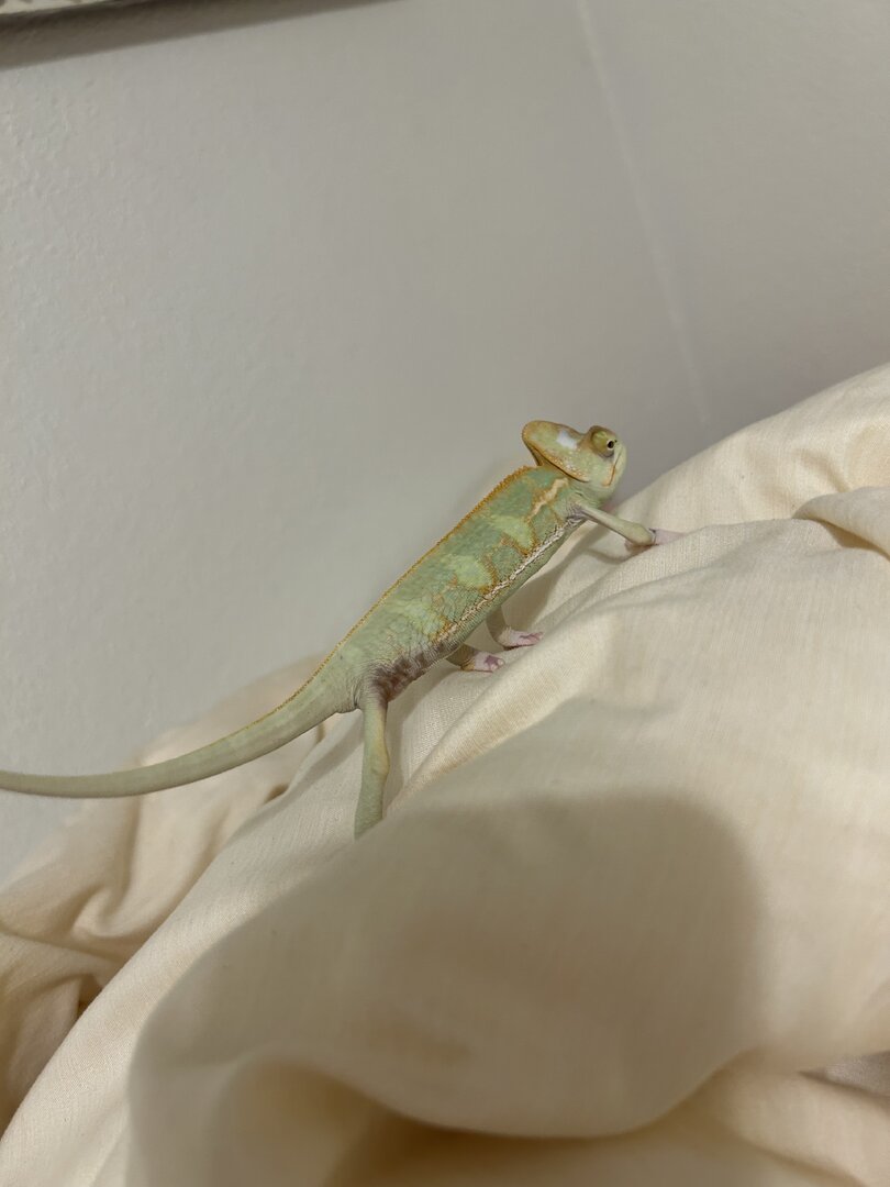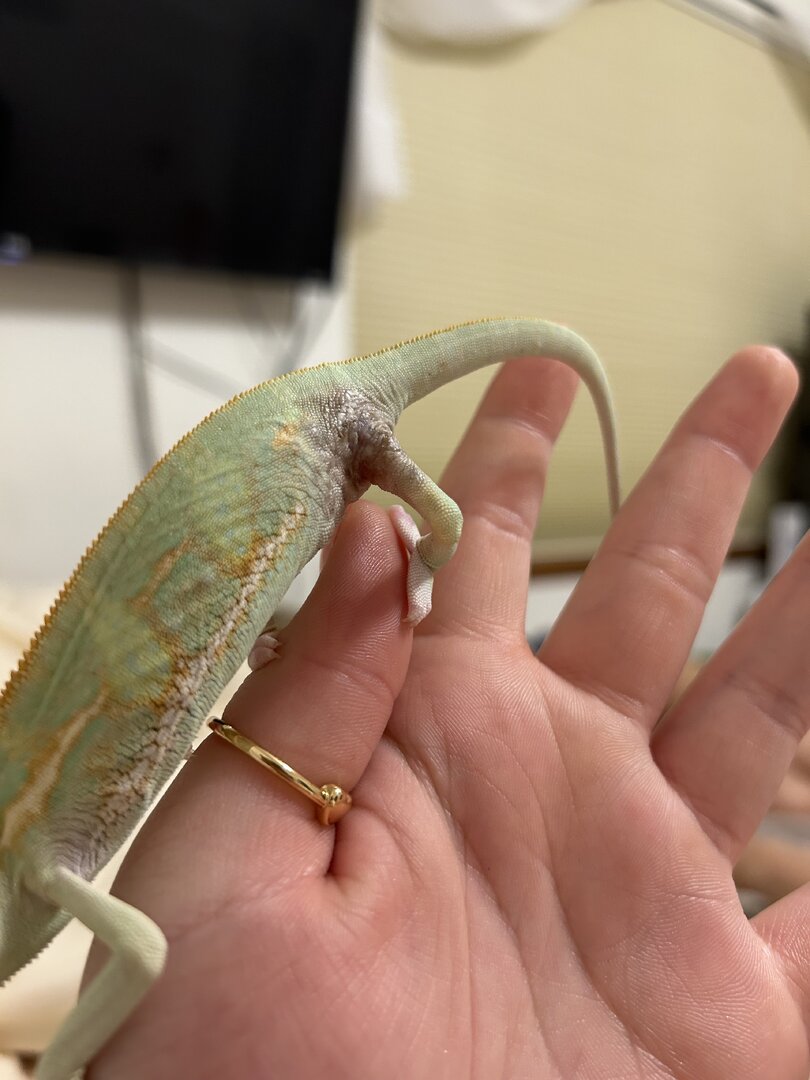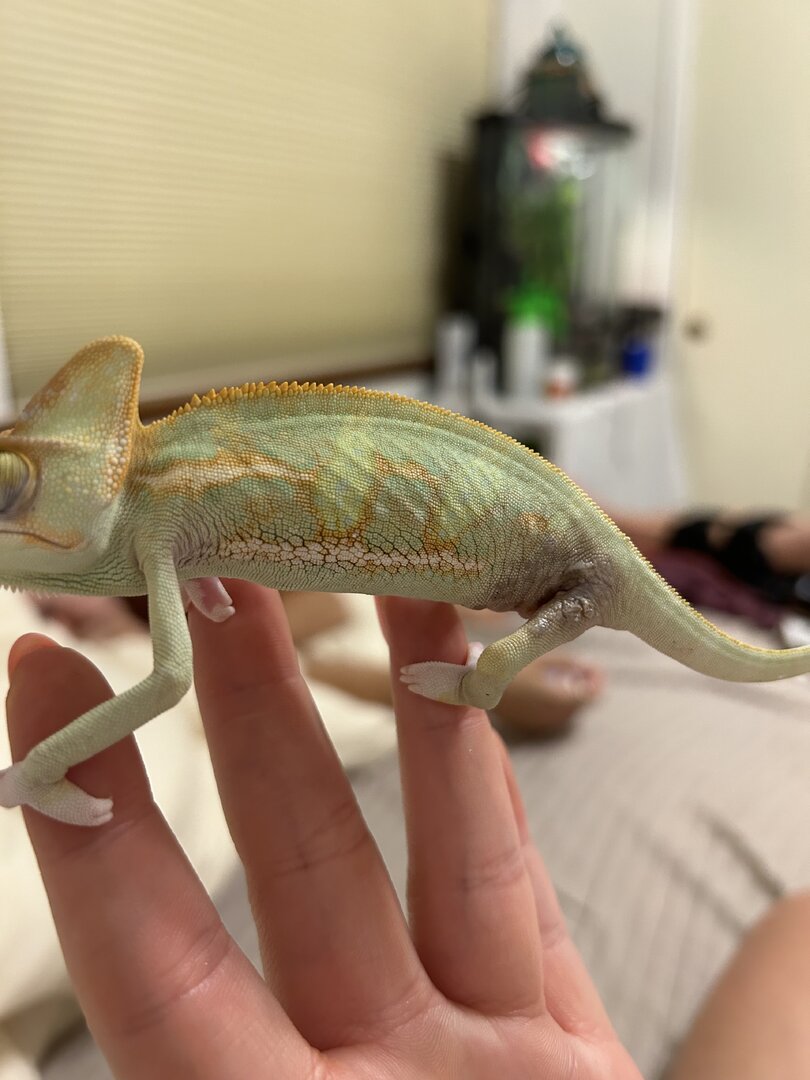Hello! I have a baby chameleon. I have only had him for 3-4 week and he’s the sweetest thing ever. I have one chameleon already and got suckered into getting him when I saw him at Petsmart. He caught my eye because he was so sick looking. When I brought him home, I noticed a dark spot in his back leg crease. It didn’t seem to bother him so I just kept an eye on it. Over the next few days/weeks. I noticed it spreading, so I made a vet appointment. I had an option to get it biopsied for $400 or an antibiotic/antifungal cream for $22. I went with the cream and since using the cream, I have noticed it has spread to the other leg. It has no effect on him and he’s still eating/drinking, pooping, and acting just as he did before. Has anyone had any experience with this?