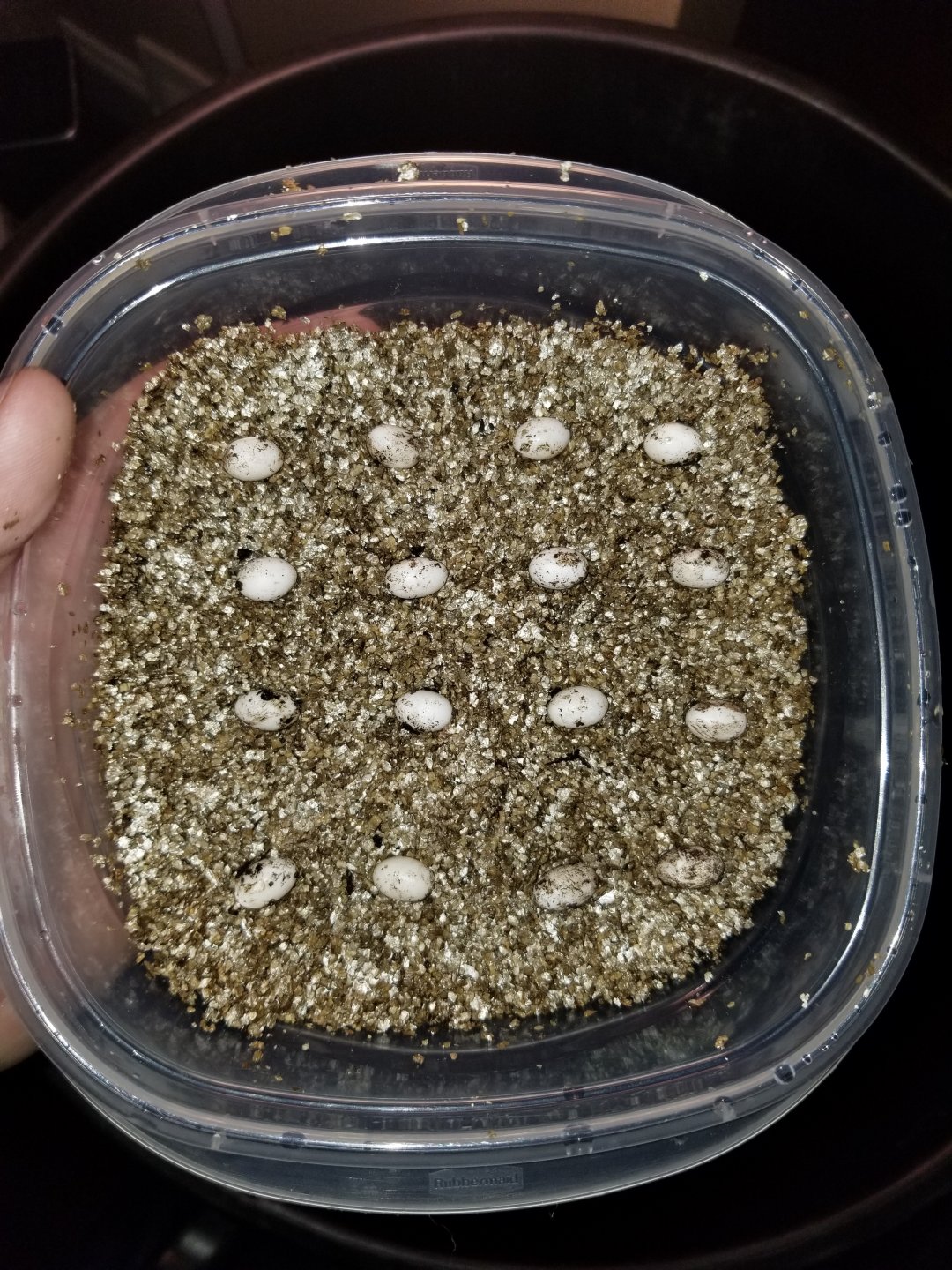 This is why I love keeping reptiles. I was having a terrible day. Got home from work and walked into this and completely changed my demeanor. 16 pearly white furcifer minor eggs going into my new incubator from Incubators by DVM Exotics. It has dual temperature zones, the capability to heat/cool and provide night time temperature drops. Top of the line incubator and I'm looking forward to giving it the first real test. Also a picture of the girl. beautiful even after all she just went through.