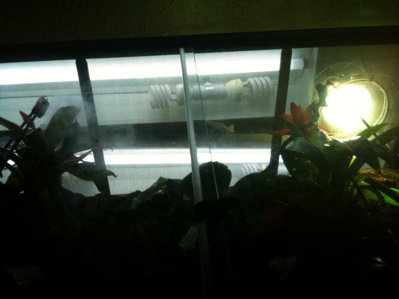 Well how about the top part of the form? Anyhow, are these other 5 uvb bulbs linear or the CF type? Im having trouble figuring out from the photo how you have that many lights going! But thats way to much for sure. I would also move the 10.0 up. The chameleon will need to regulate its uvb, it should not be able to "bask" at any point of the cage, heat, light, humidity, everything should have a gradient to it within the cage.