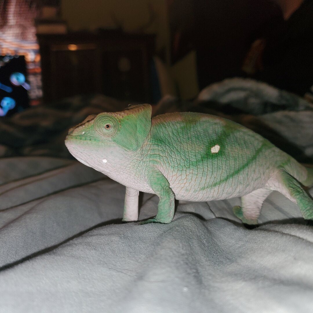 Soooo I haven't been posting in the last couple months and I apologize! I still lurk on here alot and search forums for help if needed . With that being said, I miss you guys . So this is the baby Yellow Giant u showed you all at 3 months . Her name is Gaia now and she is 6 months and 2 weeks old. Just did her weekly weigh in and she just hit 70 grams !! She just finished shedding a couple days ago and she has took it on herself to develop this beautiful green