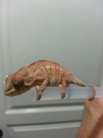I have a more recent picture of my chameleon at this link with the tail straight out.