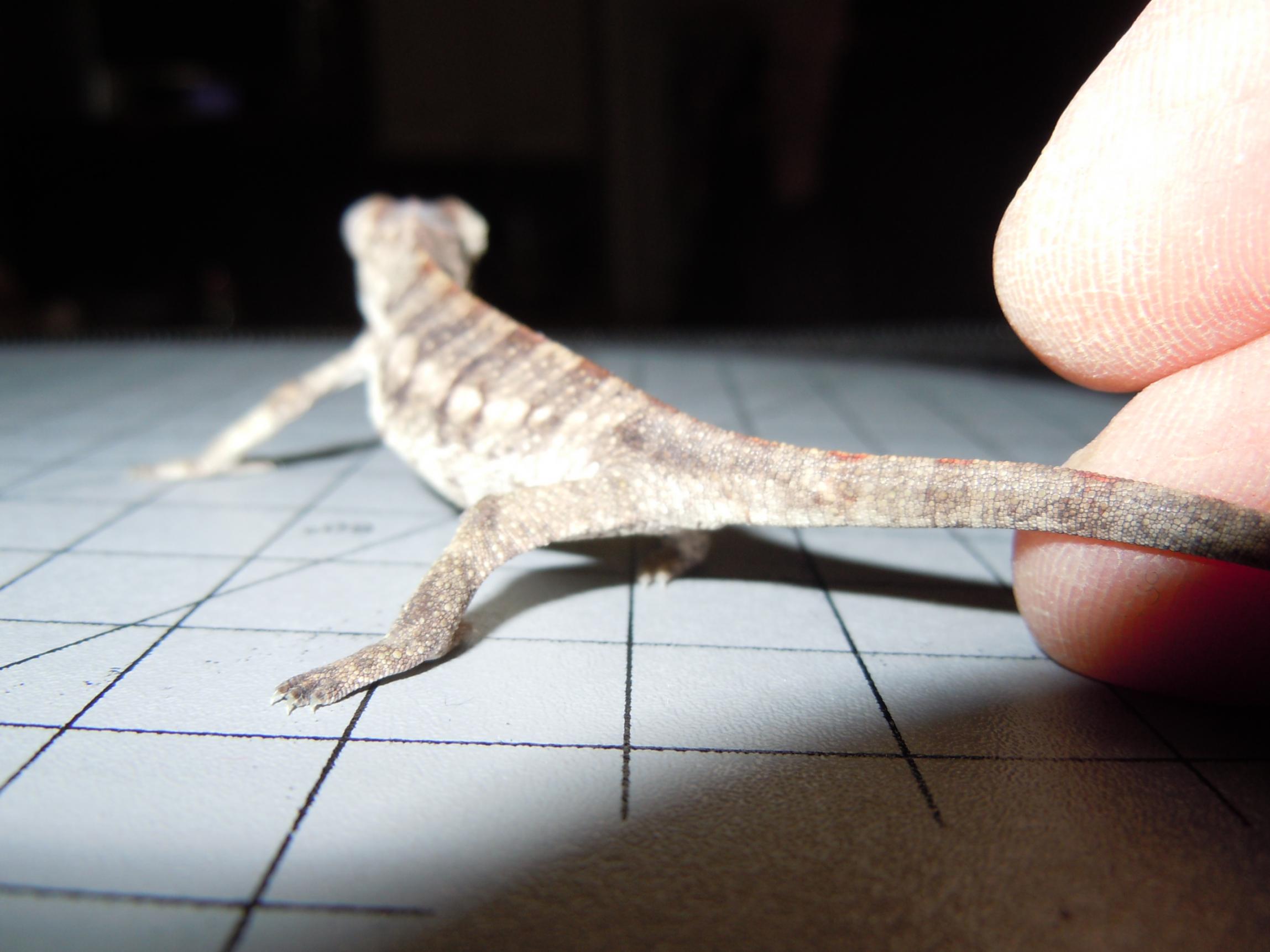 Thanks for the input guys. My guy is not a voracious eater like some young chams I've read about on this forum. No one has been able to give me a 100% sexing thus far, so I'll just have to wait a little while longer until he/she starts to develop. Here's a slightly better picture of the tail at a better angle.
