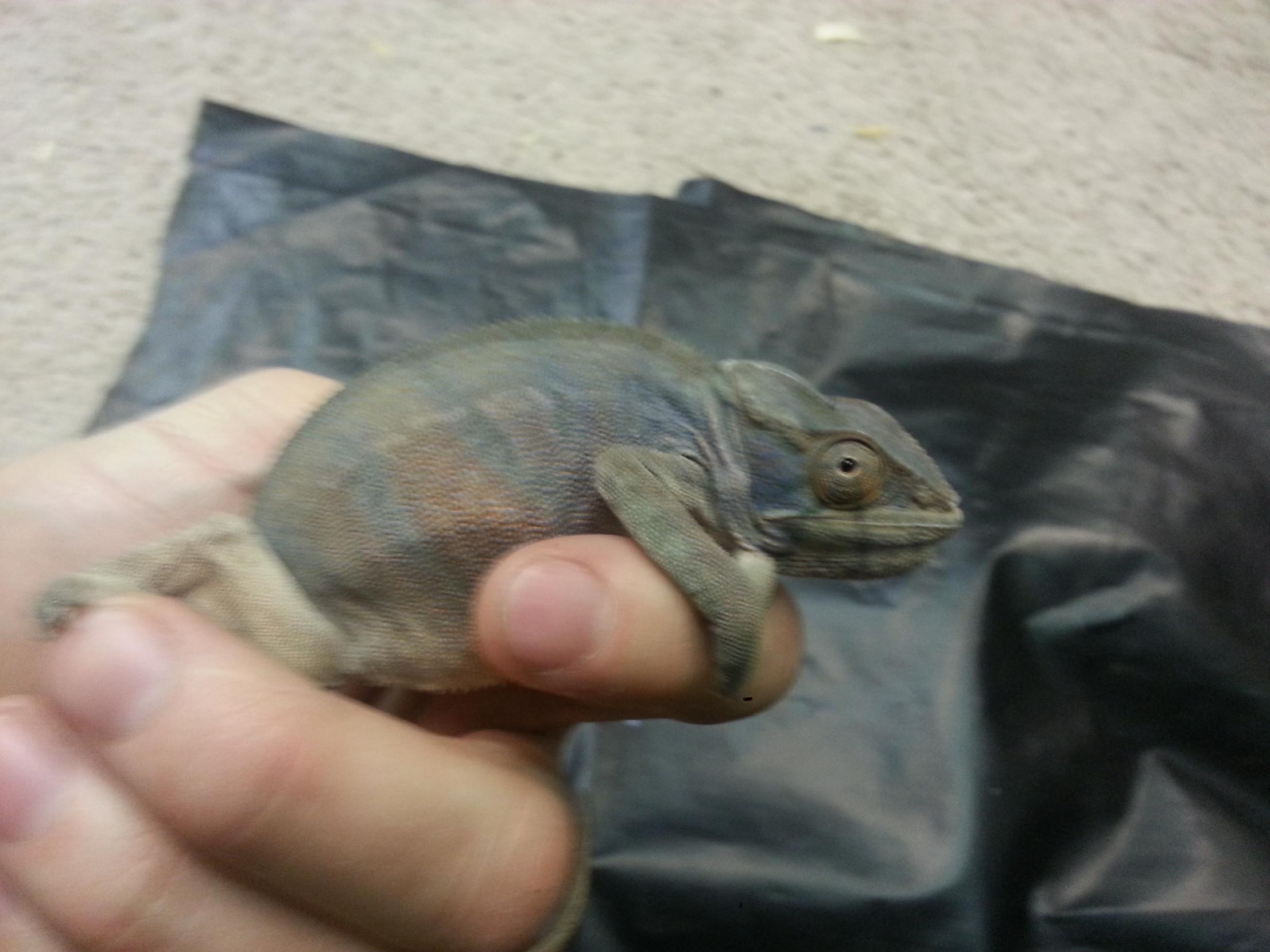 Supplements - I have dusted once. I've only had the chameleons for about 5 days. They weren't being supplemented at her house. I have rep-cal phosphorous-free calcium with Vit D & Herpivite with beta carotene.