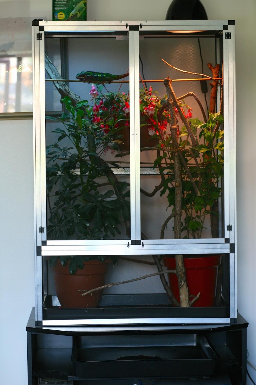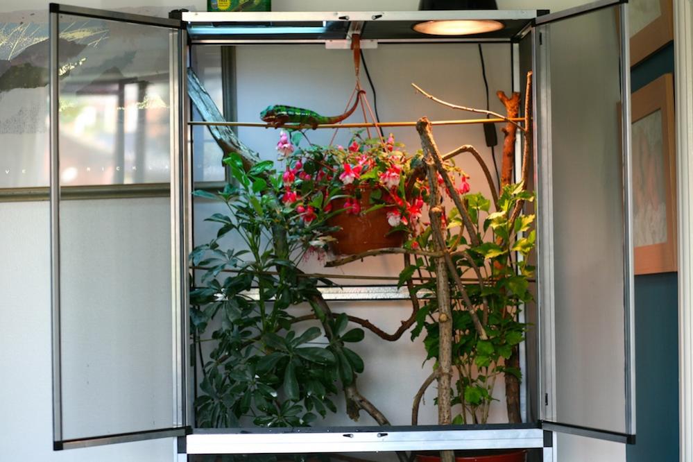 George is finally in his new big boy cage! We had a custom cage made by Chameleonworld Muji, 122cmx79cmx42cm.