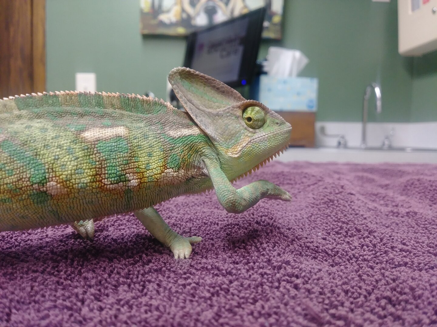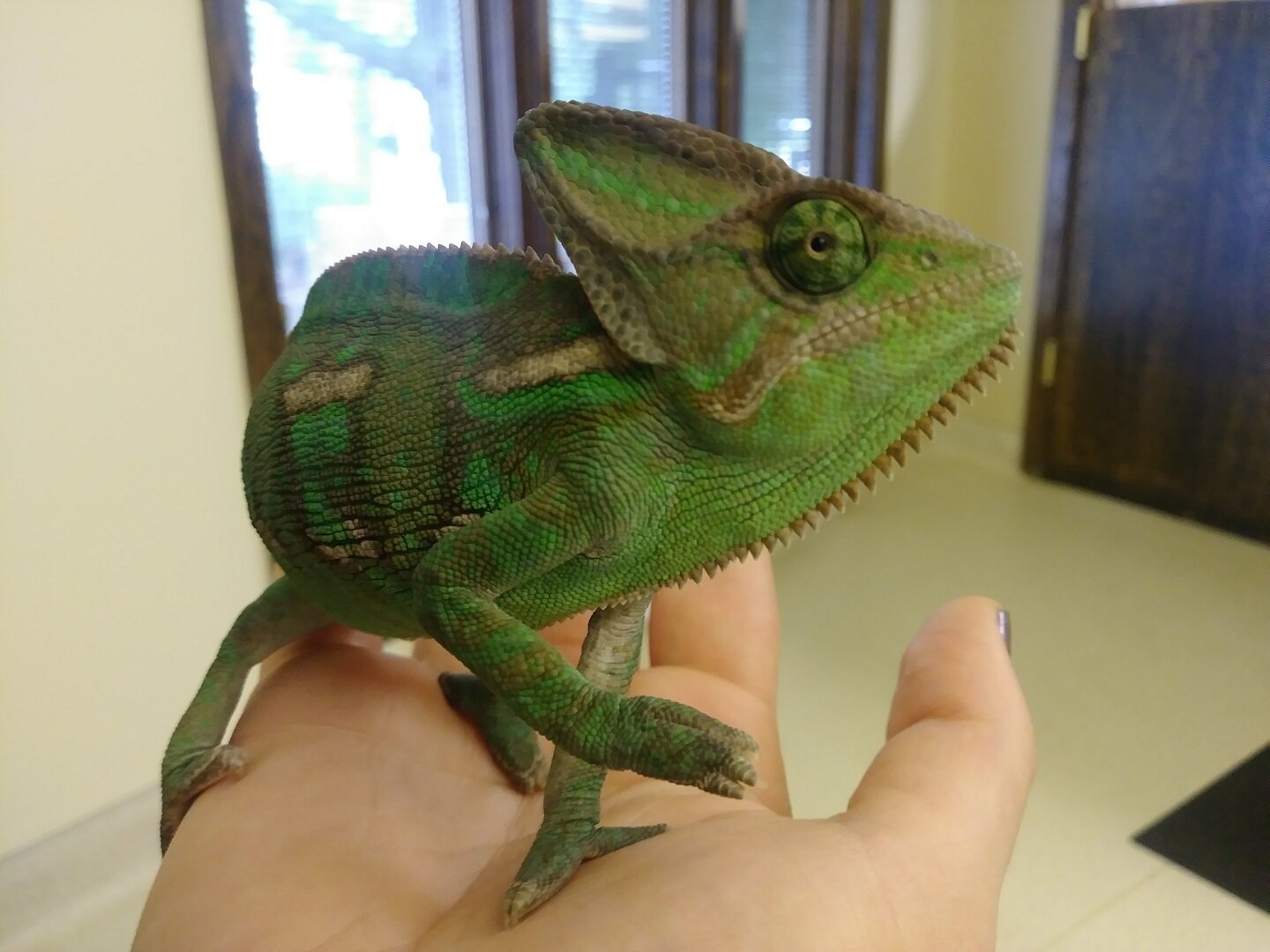 • Your Chameleon - He is a veiled chameleon named Khalid. I got him on 7/21/19 at a local reptile Expo. The seller told me he was 10 weeks old at the time of purchase. That would put his birthday at May 12th, 2019. It's early September now, so he should be about 4 months old.