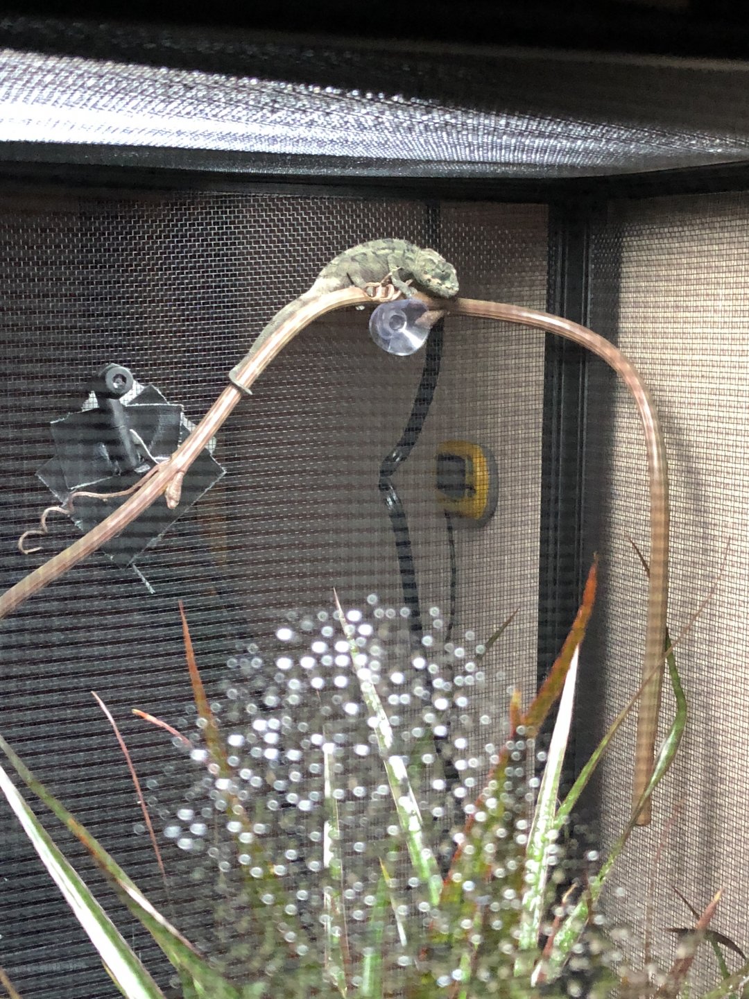 ◦ Watering - What kind of watering technique do you use? How often and how long to you mist? Do you see your chameleon drinking?
