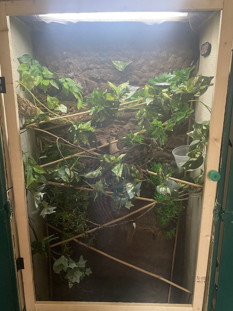 I know I’m going to cause an upset with my fake plants, but I promise he doesn’t eat them and he seems much happier than when I had live plants in the enclosure and was constantly in his enclosure switching them out (I can’t keep a plant alive to save my life)😂. Open to any suggestions for improvement!