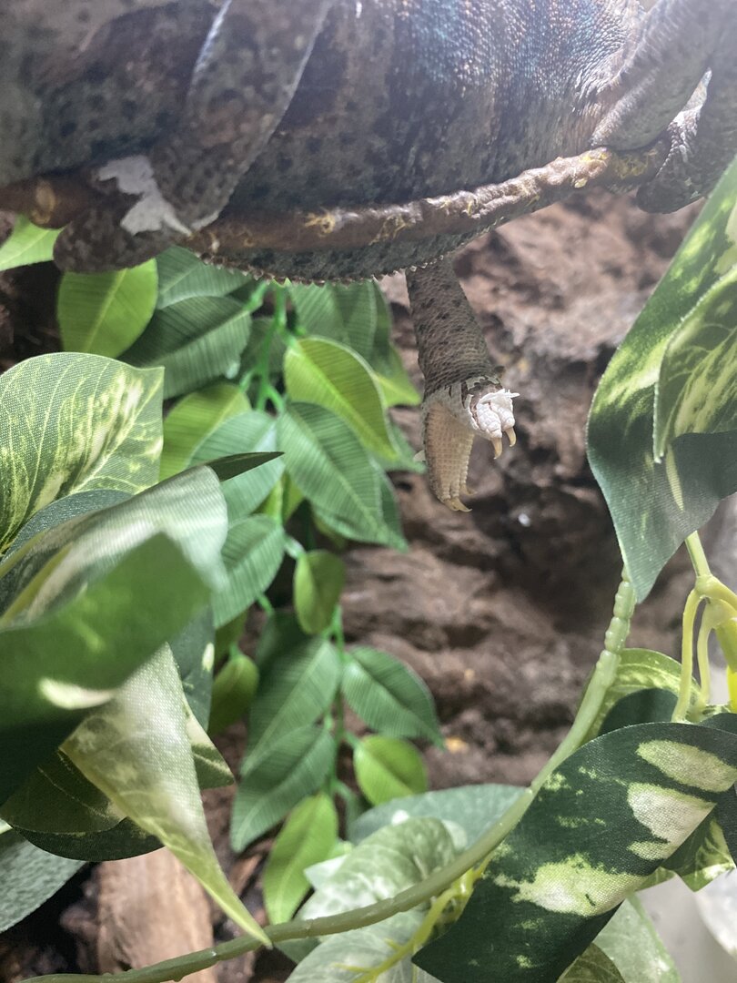 My chameleon started showing swelling in his rear Rt foot/ankle about a week ago (photo attached). I suspect gout given he has no symptoms of MBD and the swelling seems to reduce with increased hydration/soaking. I immediately took him to the only exotic vet in the area who will take chameleons; he didn’t do any bloodwork or x-rays and told me my only option was euthanasia. Obviously I am not willing to euthanize my otherwise healthy cham if there are other options that can help reduce his gout and give him a good quality of life! I have done a lot of research and have reduced his protein intake, increased his hydration, and have been soaking him in warm water when he is willing to come out of his enclosure. It seems to have reduced some of the swelling but he is still not using that leg. I have read about the use of cherry extract for gout treatment in bearded dragons, does anyone have experience with this in chameleons and could advise? I am open to all suggestions.