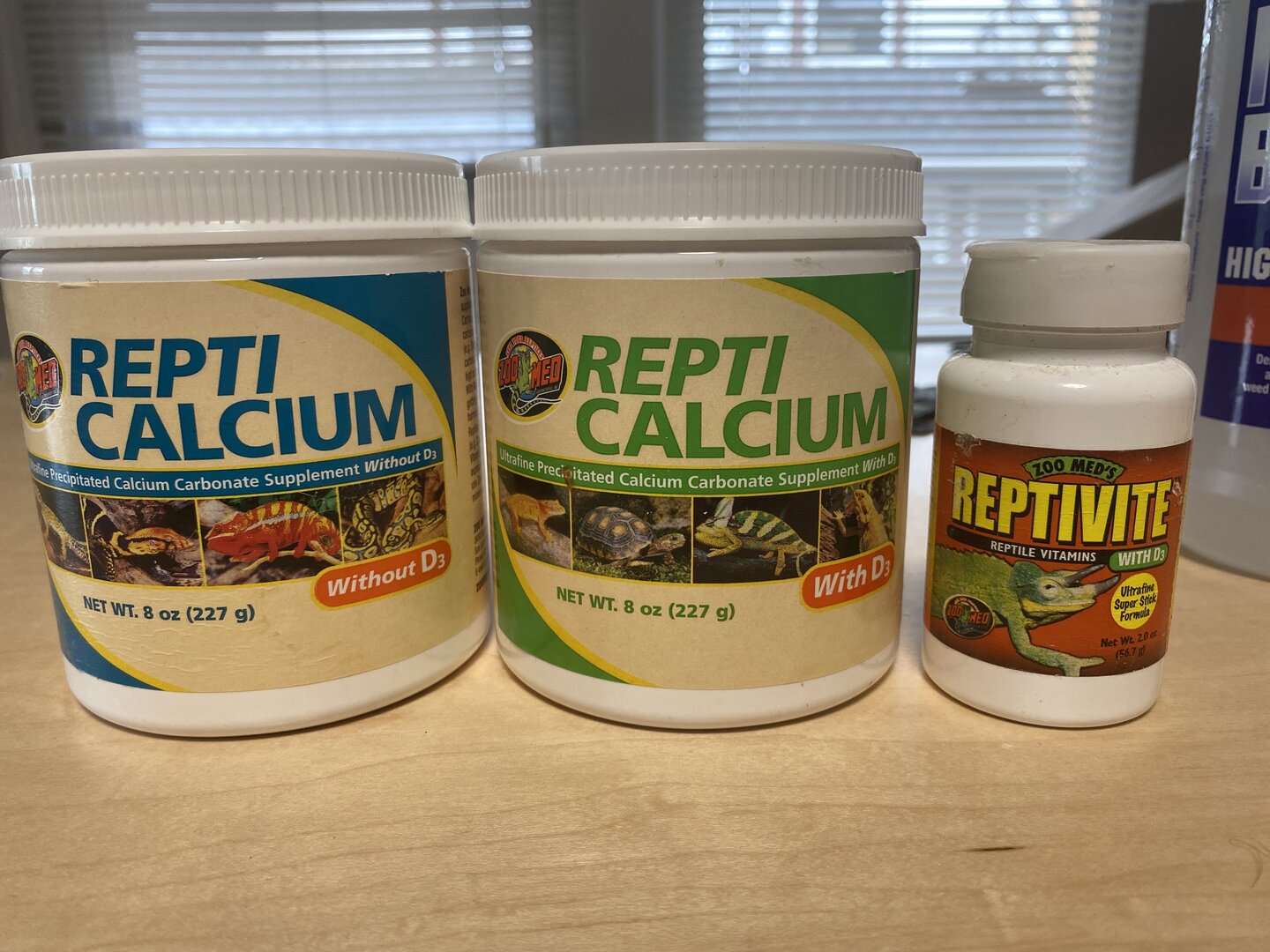 • Supplements - What brand and type of calcium and vitamin products are you dusting your feeders with and what is the schedule? Calcium w/o D3 daily, Calcium w D3 2x/month, multivitamin 1x/month. Zoo Med brand I believe.