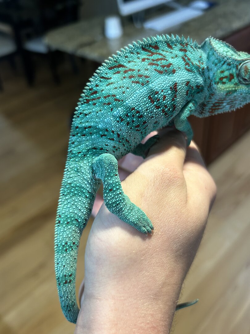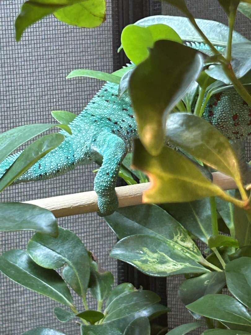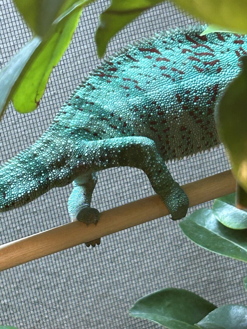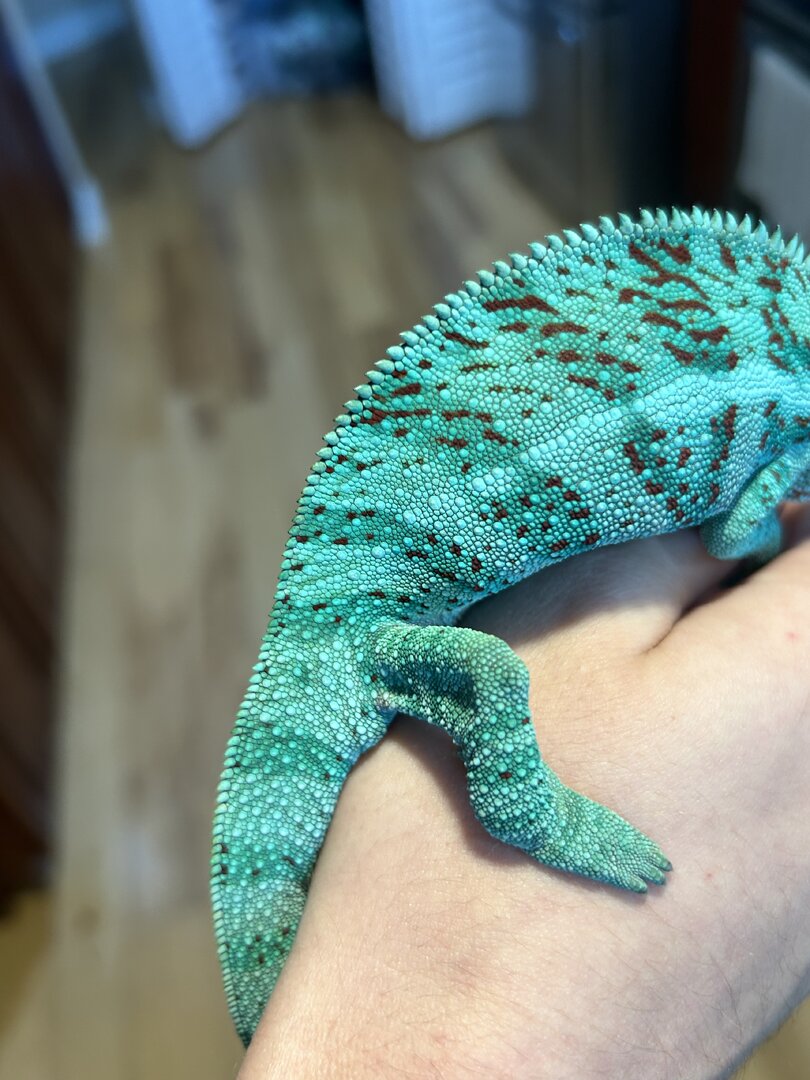 hello thank you guys very much for helping, so i brought him to the vet around 2 weeks ago for a different reason and i brought up that i questioned if he had gout because i saw him hang one of his legs off a branch, i don’t have a picture of it but it but i found one online. (last slide) she said if the gout is just from over feeding than to give half as many feedings as normal and it likely wouldn’t need any medications but if it gets worse get it checked up again. then she said to test for gout she would need to poke his vein or some line under his butt to get blood out and she kept on saying fingers crossed everything goes okay which made me not want do that just yet as well as my vet bill was already around $800. i really believe it’s from overeating because that week i first noticed it was the week i gave him 4 feedings of silks and he would eat around 6 every feeding as well as he is normally a good eater with a thick tail and thick forehead. he has also been overly pissed off lately he used to never get mad at me but recently he puffs up like crazy and opens his mouth and sometimes shakes cause he’s so angry. the swollen back legs aren’t noticeable when his leg is straight or in a forewords position but when they’re a little bit behind him you can see that they are a little bit swollen. i noticed him hanging a back leg for the first time around 2 weeks ago and saw it again yesterday. if the gout is from overfeeding how often do you guys recommend i feed him and how much? thank you guys for trying to help it means alot if there’s any way to donate back to the server please let me know you guys help a lot. also i would like to add that this vet said she is trained very well for reptiles but she is not a full on exotics vet she just treats the all the reptiles that go in there but she said she has previously owned chameleons and works on reptiles everyday she sounded very knowledgeable but when she told me that it kinda weirded me out and made me definitely not want to do that blood sample and is the reason i am trying to get second thoughts thanks again