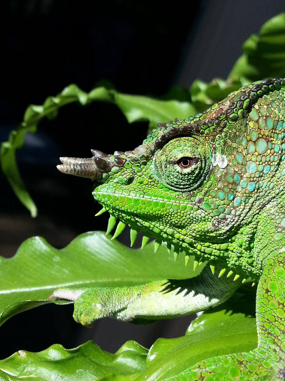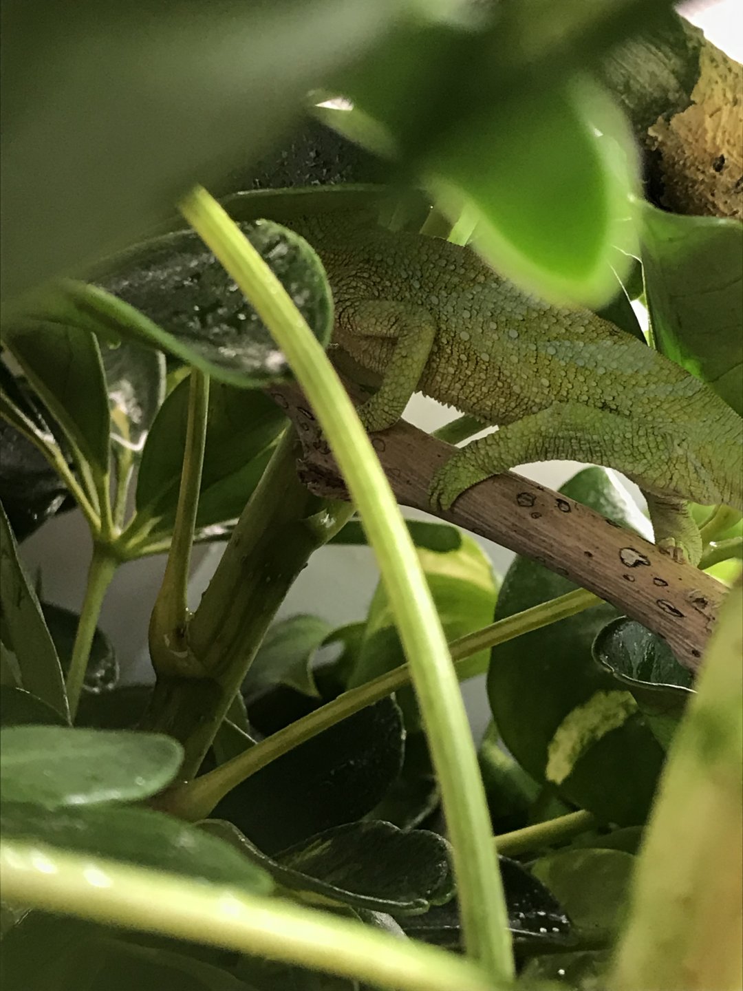 Maybe you will think this is a tough-looking guy but he isn't tough at all. I see a chameleon with a regal bearing, not tough or mean. This is the daddy to @Daniel266jz's baby.