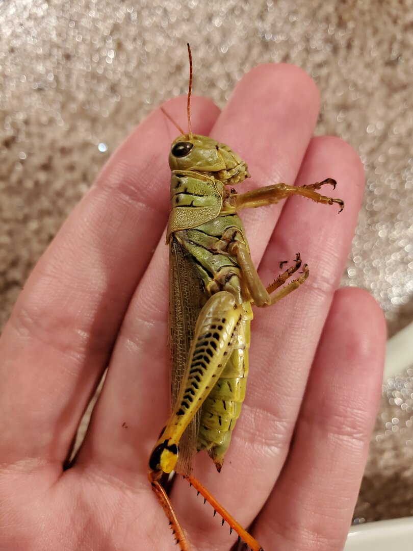 His should be adults by now, so we'll know if he has recent pics. These are Melanoplus differentialis. I think his were Melanoplus femurrubrum or possibly bivittatus.