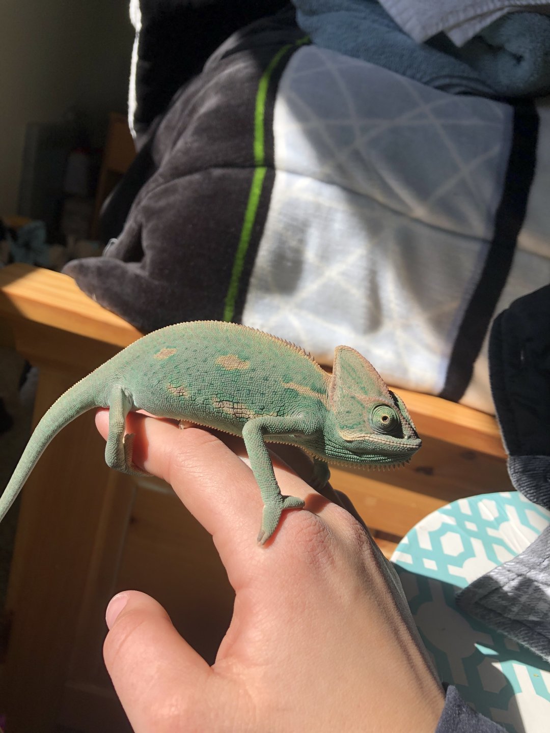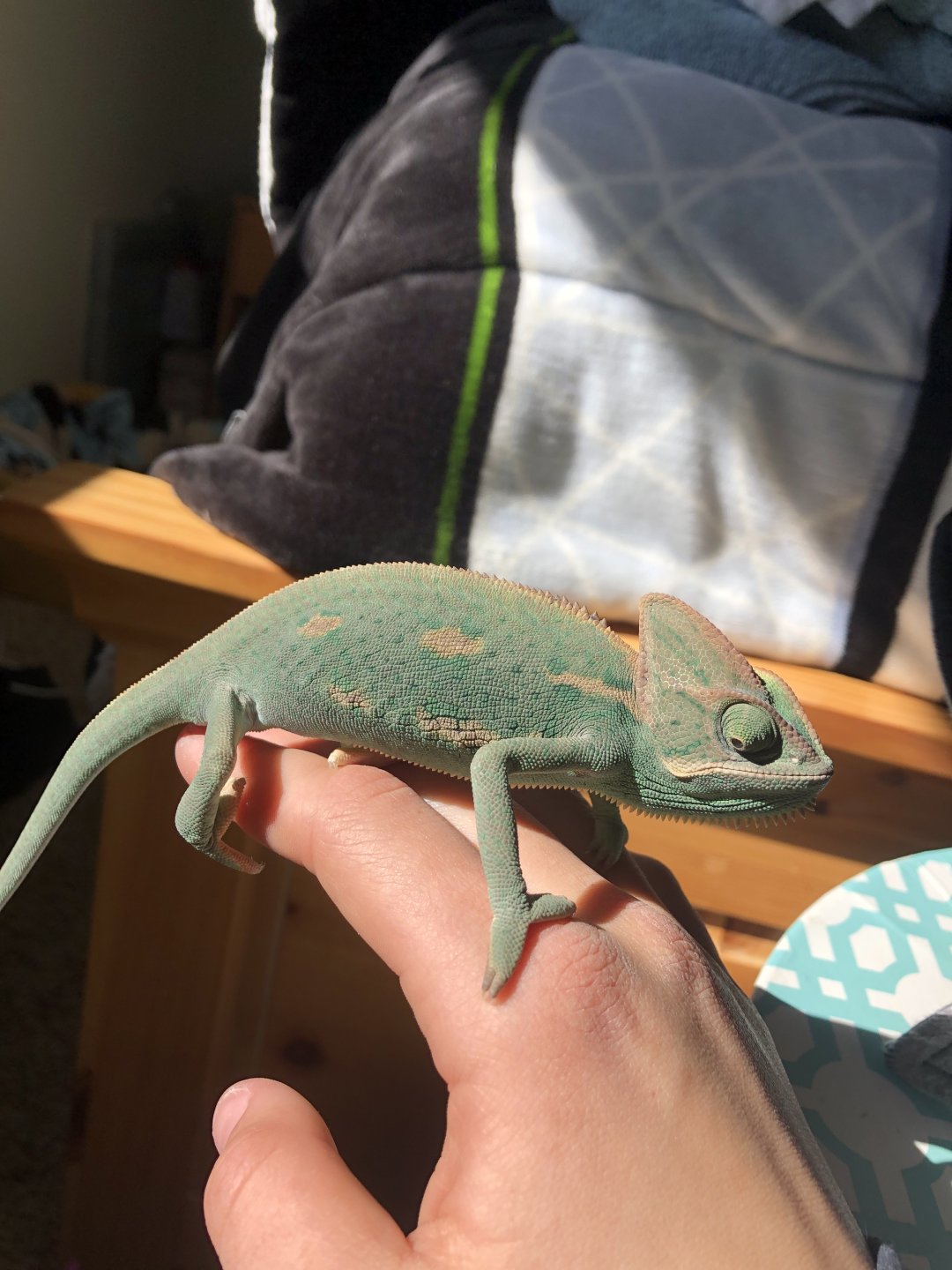 Totally understand and what a great mom you are taking such good care of her. I think the female veileds are so amazing between their receptive and gravid colors.I’ll try and get a photo next time. I try not to ever disturb her. She’s had a hard life so I just try and give her the peace and quiet she enjoys