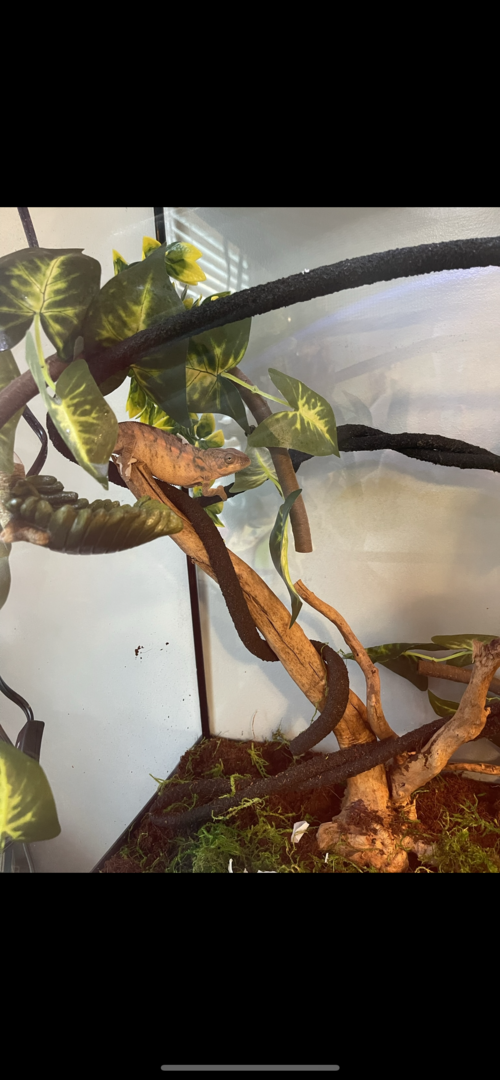 Hey everyone! We’re totally new here. I just got my Panther Chameleon girl, Poppy, a week ago. I’ve got her a good glass enclosure with ventilation, regular misting, live plants, etc. She ate one superworn and one hornworm since she has been home. She is normally pretty docile and changes color all the time. I have her UVB set up and am doing everything as I think I’m supposed to. After looking on different forums today, I’m looking at her coloring and wondering if this is just her natural color, or if she is Gravid? Also her eating has not been regular, so looking for some guidance with that. Her enclosure has been updated since some of those pictures with live plants and no substrate. Thank you!