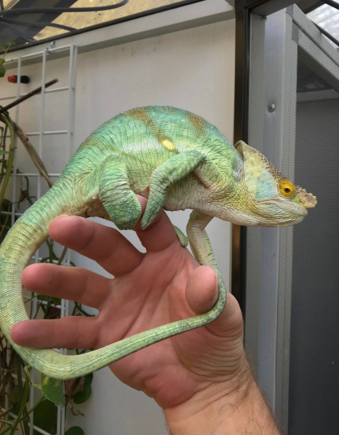 Does he have blue cheeks and white lips? He does appear to have a greenish yellow body. That is one of the three sub phases I have consistently noticed. There is a solid Yellow Bodied Yellow Giant "Honey Parsons", Greenish/Yellow Bodied Yellow Giant (Curtis's Zilla and Ralphie greenish/yellow bodied Yellow Giants over 1000 grams), and Lemon or Yellow Headed Yellow Giants.