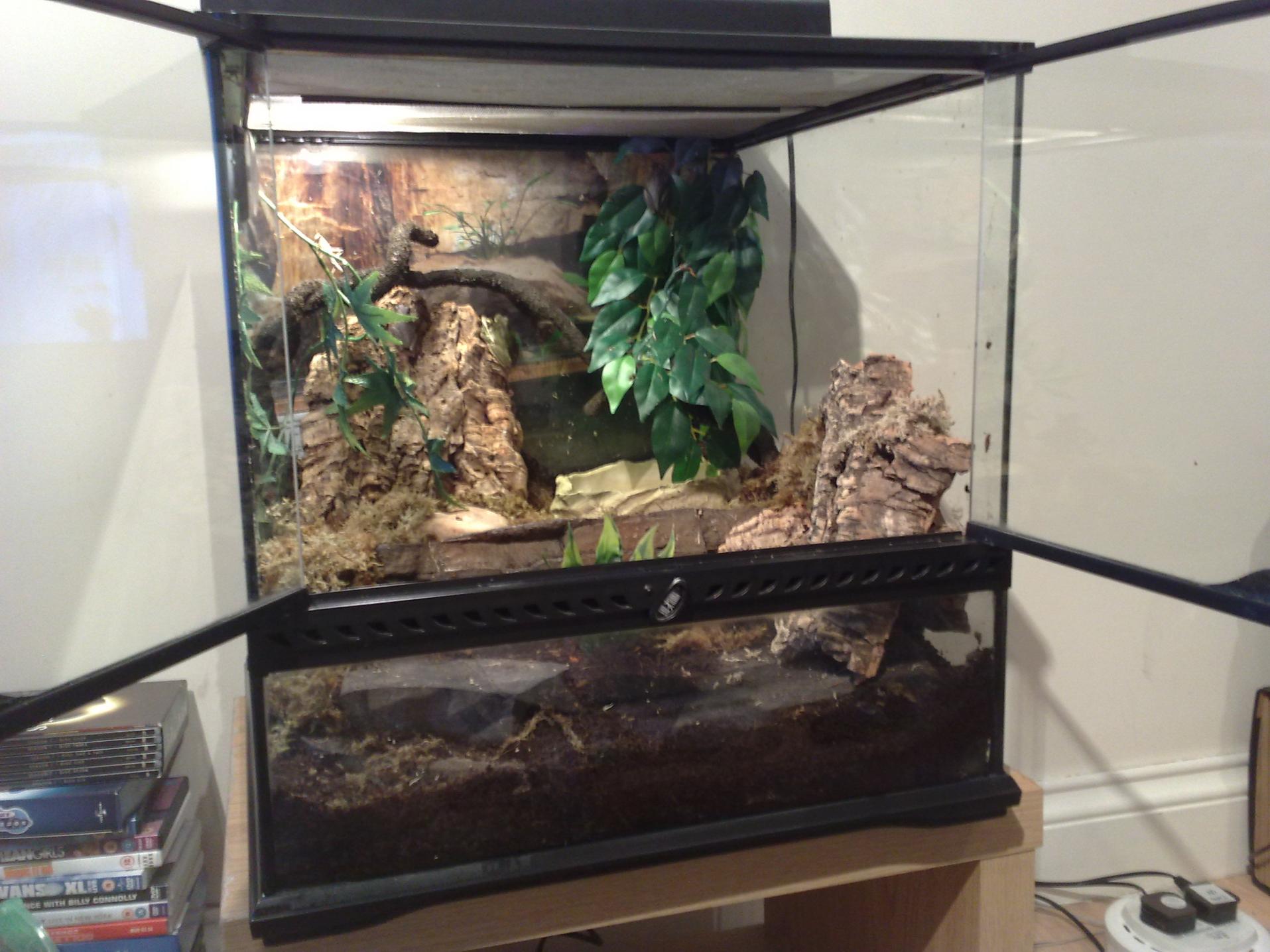 Food = Grasshoppers and Crix dusted with calcium and vitamins