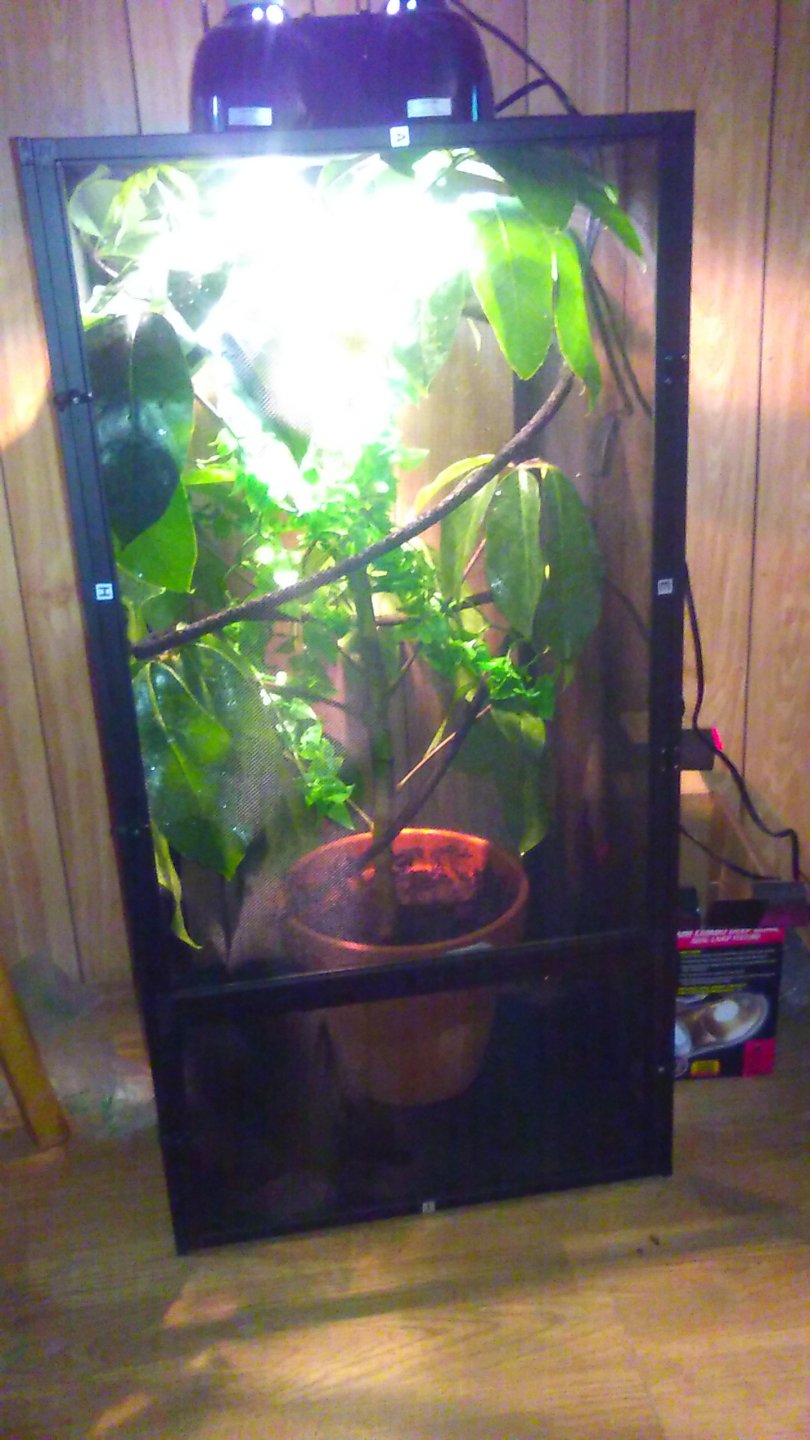 Over the last few weeks I have been piecing my enclosure together, grabbed a good umbrella plant, some fake vines and such last night. Anyway, here's my progress.