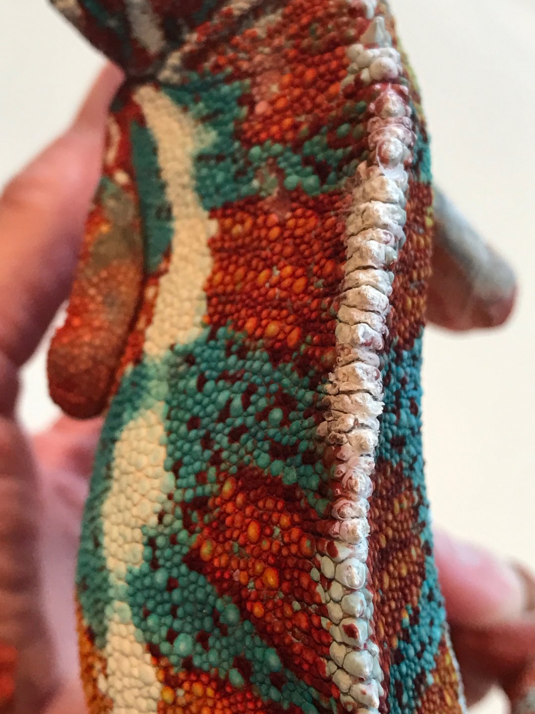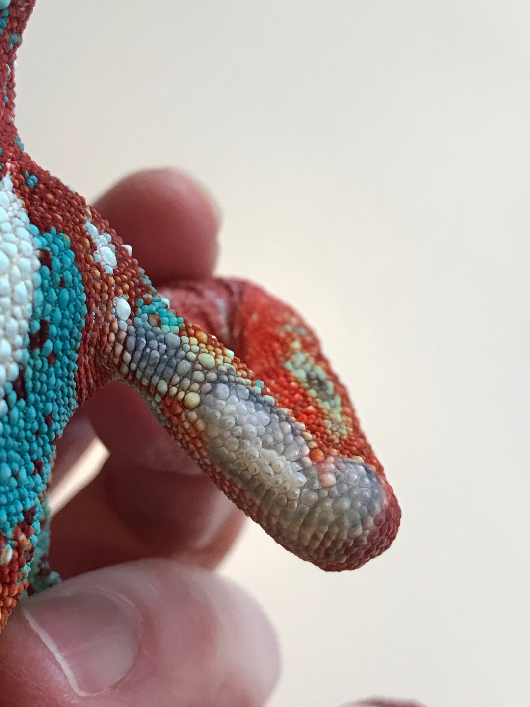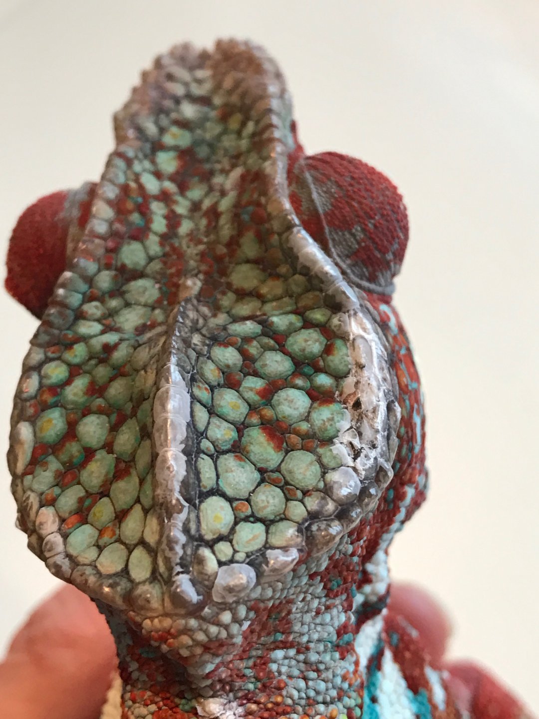 Help, my panther has grey patches on the tops of his front arms and back knees. Also just yesterday his skin on his crest and back are turning whitish, maybe shedding there? But I'm especially worried about the grey areas that have been there for several weeks.