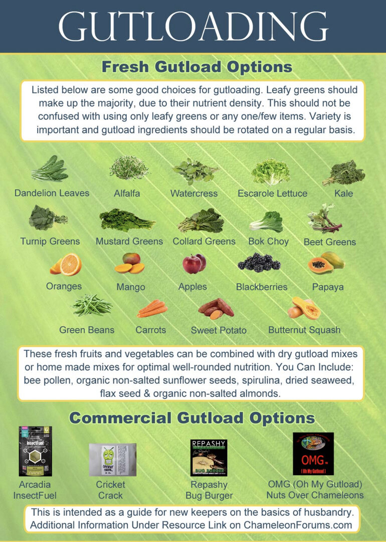 Yes i understand the concepts of "gutload" vs "food". But chameleonforums "gutload" sheets/sections are not really "gutloads", they are "food" and should not be fed before feeding the bugs to chameleons?