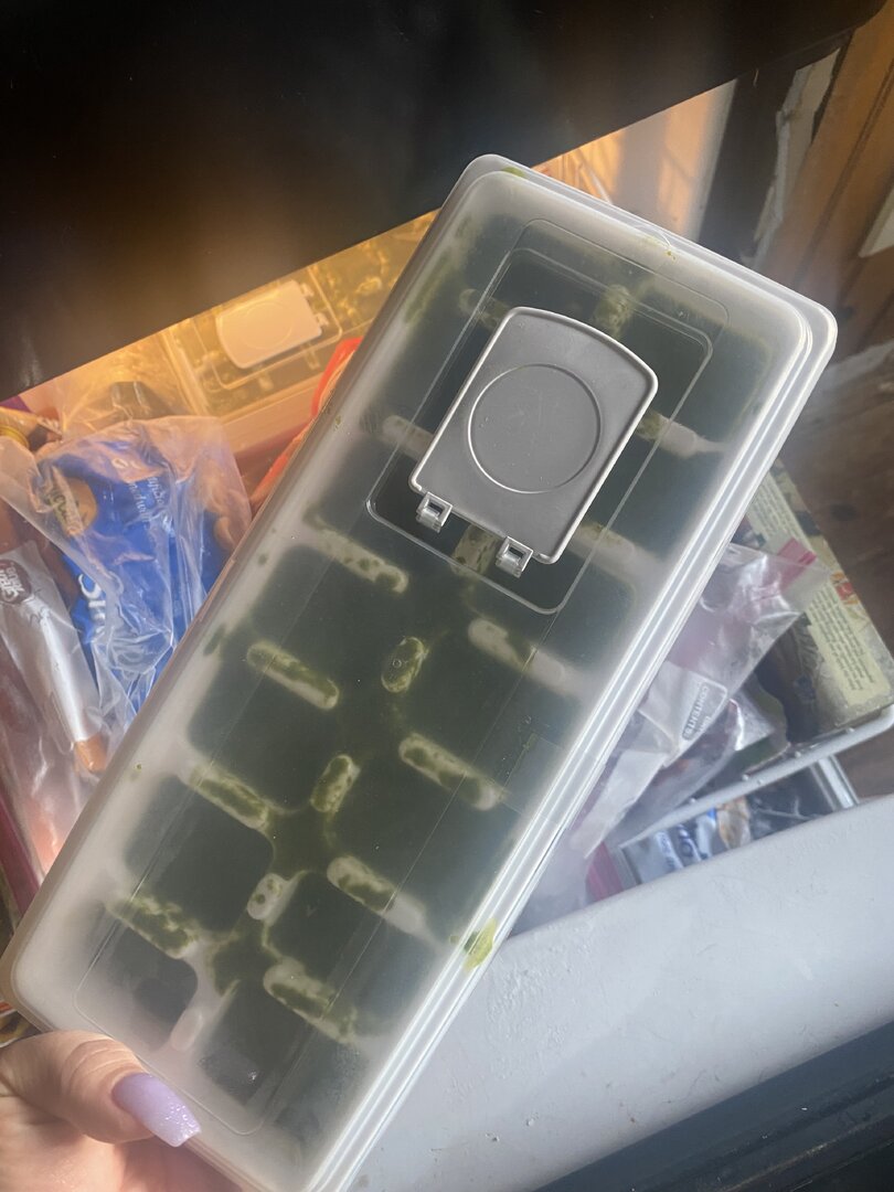 I did some math (which I’m not great at) and figured out the measurements for one ingredient per category. The measurements are not perfect, but it saves waste as I did not have any left over items this time. It also fills two ice cube trays almost perfectly.