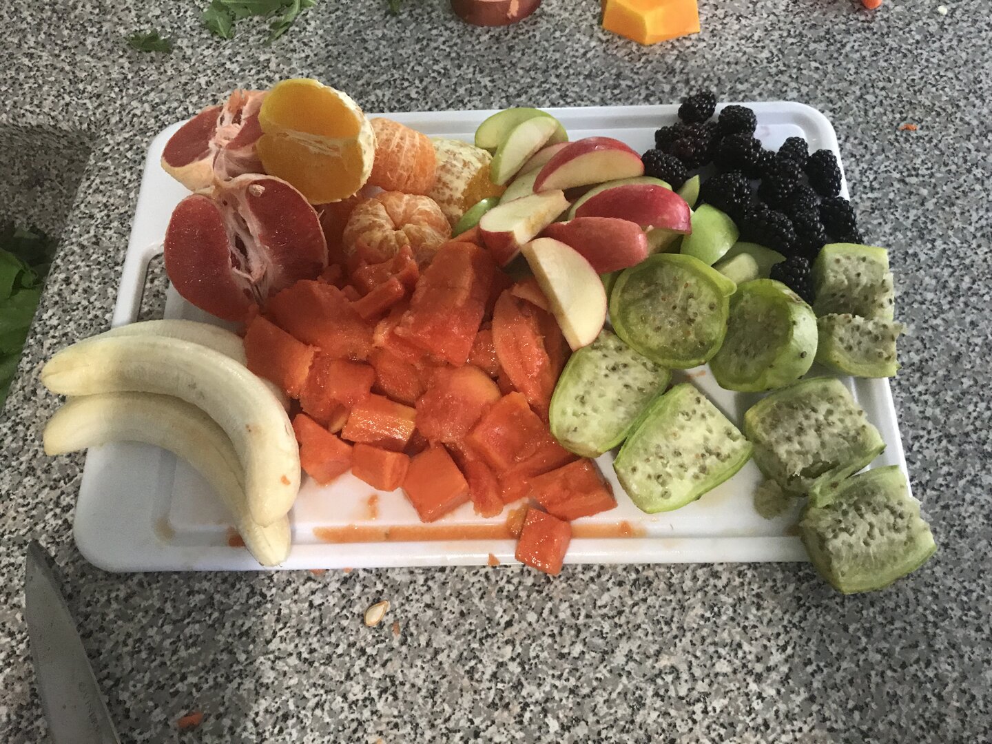 pic 3, clockwise from top left: grapefruit, orange, apple, blackberry, banana, papaya, prickly pear