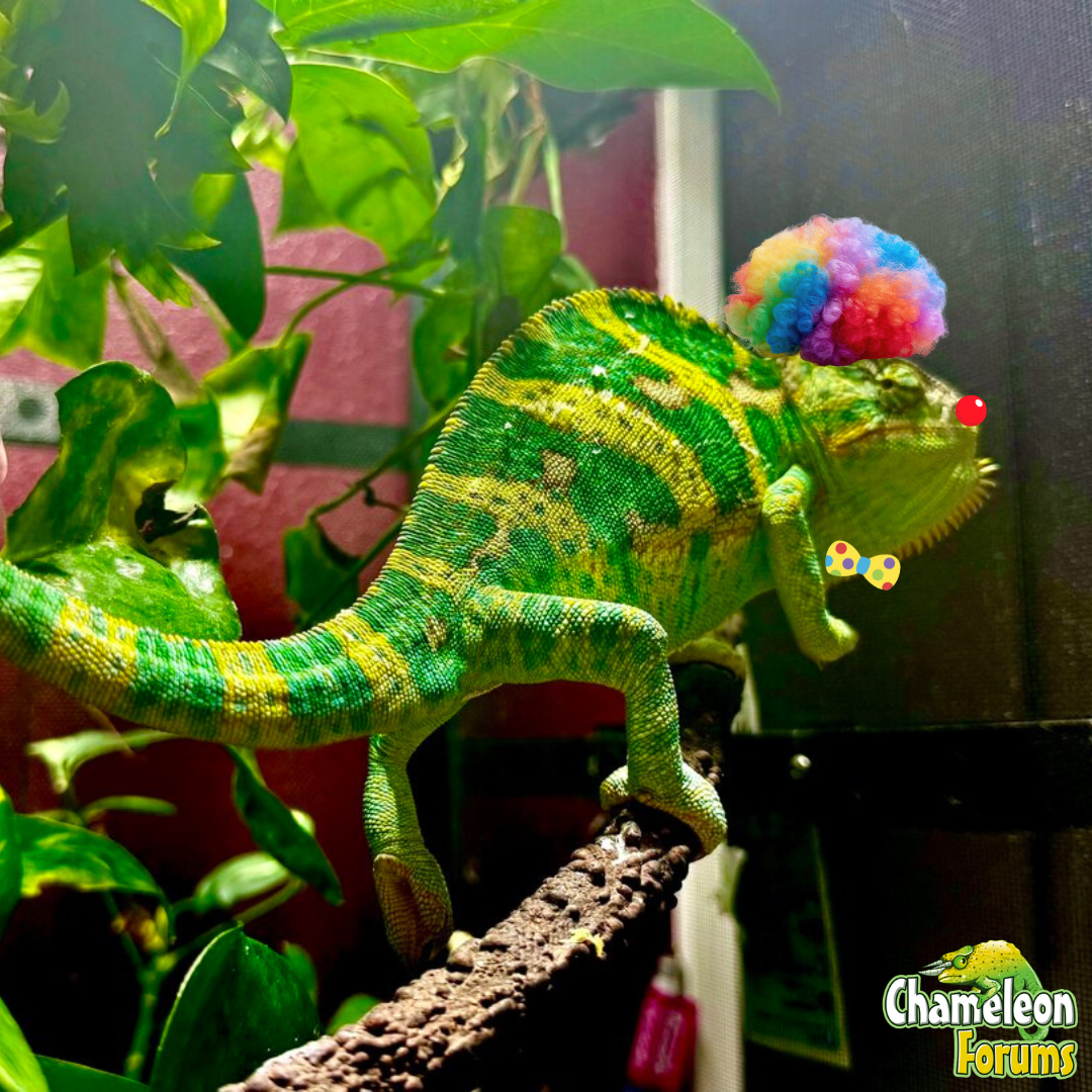 Here are a few examples of photos... We have fairy princess @MissSkittles, adorable bunny @Sonny13, and then of course my clown Beman. Here is the thread from 2024 https://www.chameleonforums.com/thr...on-of-let-me-photoshop-your-chameleon.193807/