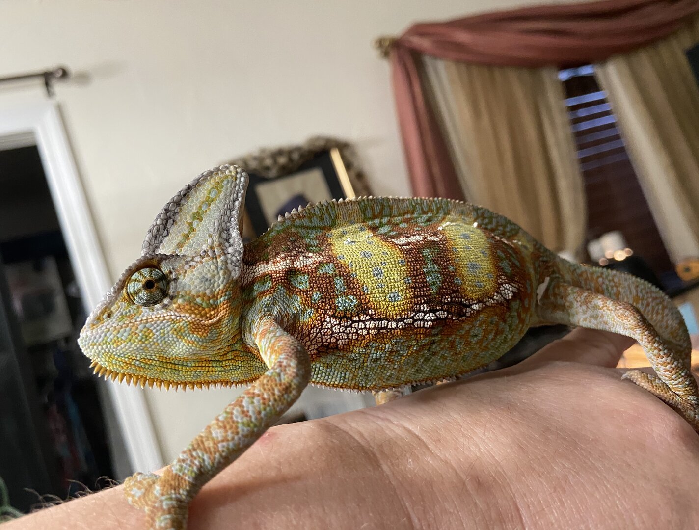 These are just a few of the photos I’ve taken of my lovely girl Alice. She can be a fiesty thing. Her favorite place is on top of my head ? and her favorite treat is horn worms (on the rare occasion she gets them. Until Alice I did not know that chameleons could beg like dogs.