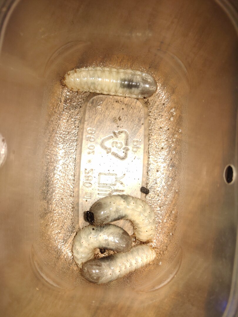 For reference the cup in the pic is about 3"x5" these guys are about 1.5-2" long, they are bigger than the beetles they become by far!