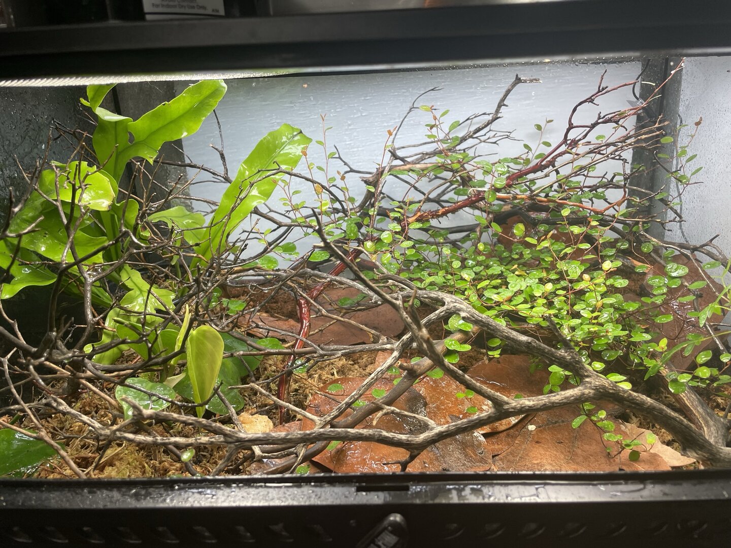 Enclosure- 24x12x18 exo terra - bioactive, live plants, lots of small sticks and cover. Using an exo terra to help control temps and humidity better. Once they have grown up a little I’m moving them to screen enclosures.