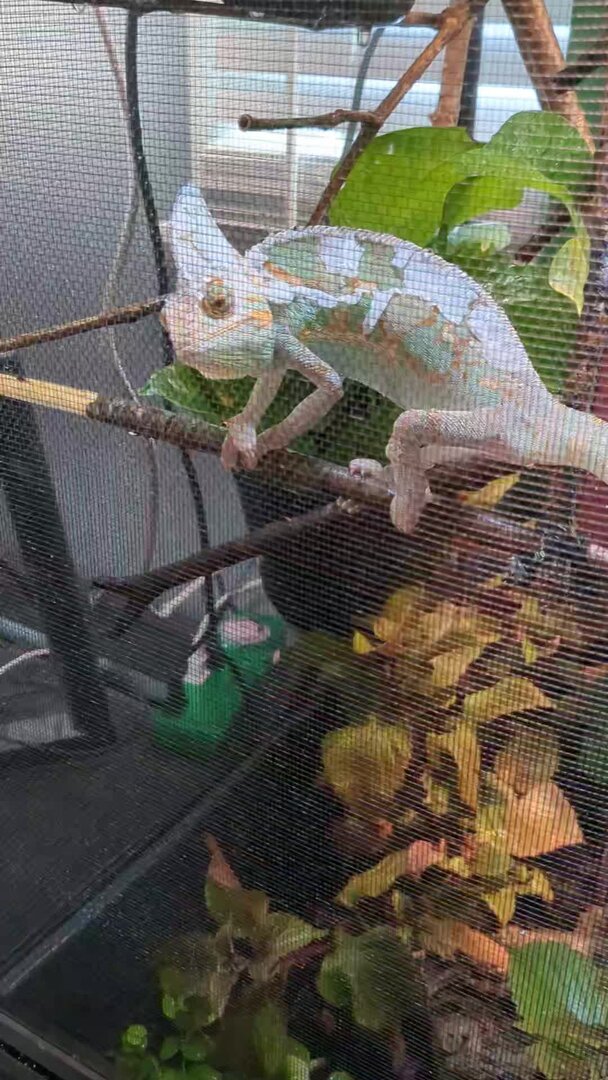 When we first cut the superworms down, he finished what was in his bowl, but wouldn't climb off again. He climbed onto the tongs, then tried to eat my fingers. I was told to expect a change in behaviour when we changed his diet because chameleons can get picky, but I was warned of a food strike, not eating me.