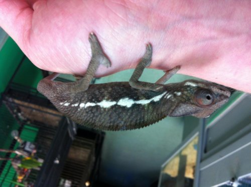 Ulrich New Member May 9, 2013 #6 He most likely means to pay a visit to the vet. The black area at the lip is not normal. Could be an injury or a cricket bite or some kind of fungus. To be safe, you might check with a vet. Other than that your Cham looks healthy and normal.
