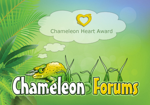 The Chameleon Heart Award is an acknowledgment of those individuals that have greatly contributed to the community. Some recipients have developed resources that over time will reach thousands of people and their chameleons. Some have worked very hard to maintain the forums and keep a friendly environment for both new and long term members. Others have for years improved discussions with their experience and knowledge, sacrificing their time to help chameleons and their owners. Some have done all of the above. All recipients of the Heart Award have made a significant and positive influence at Chameleon Forums.