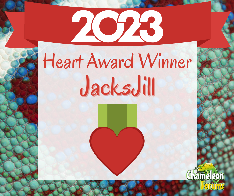 I am happy to announce that JacksJill is the latest recipient of the Heart Award at Chameleon Forums. Jillian is a former veterinary technician who enjoys helping people and their chameleons. She has been an active member since 2016 and during that time her contributions to the community have been significant. On the surface she is frequently seen answering questions and participating in forum discussions. What may be less visible is the time she has dedicated to the development of various website projects and resources. More recently, Jillian agreed to become the website's manager and I cannot thank her enough for her help. The community is a better place because of Jillian and members like her.