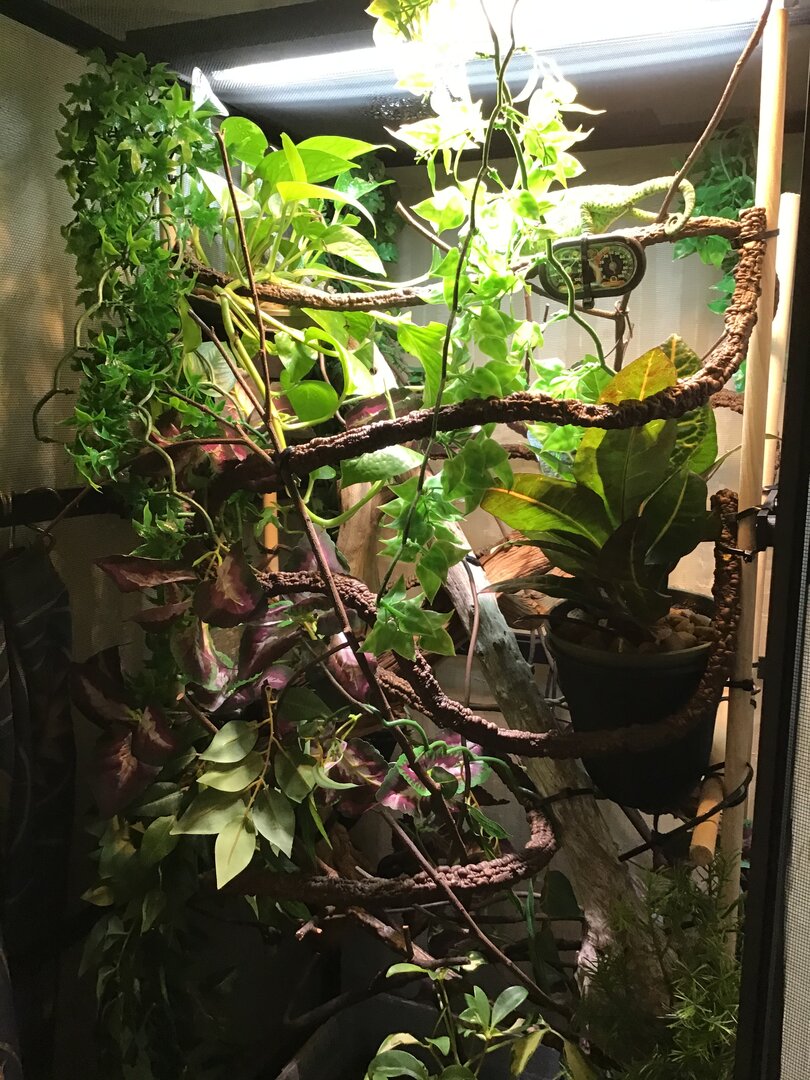 - Plants - Are you using live plants? Yes. If so, what kind? Hibiscus in the cage and a pathos plant i wanted to put at the top but havent figured out a way yet so its just sitting on top for now.