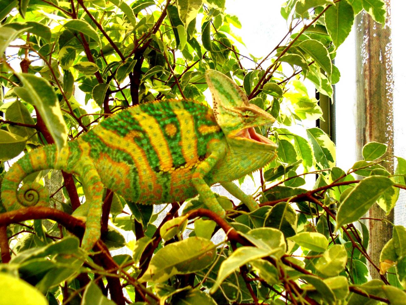 some months ego I have a problem with my veil tongue, hanging like dead worm. by now is showing a lot better, always piss-of. he do the most aggressive face a the camera, but is always looking for crickets in my hand. hope you like him. thanks.