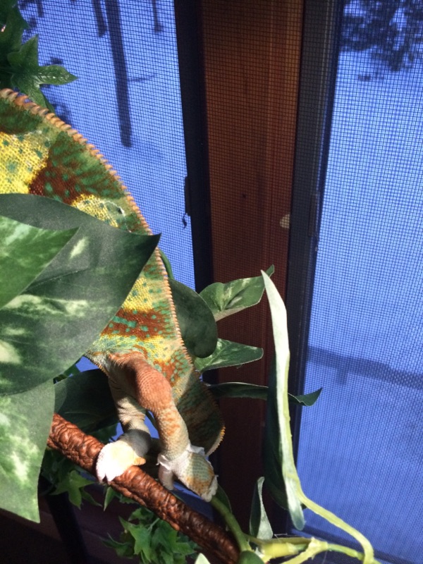 Hi everyone, my 1 1/2 year old male veiled chameleon has started to not use his back left leg, he can move it however he rarely ever does, he lets it drag behind him as well as when he is sitting on a branch the leg dangles below, the leg looks like it may be ever so slightly swollen but i can't tell, what is wrong and what should i do?