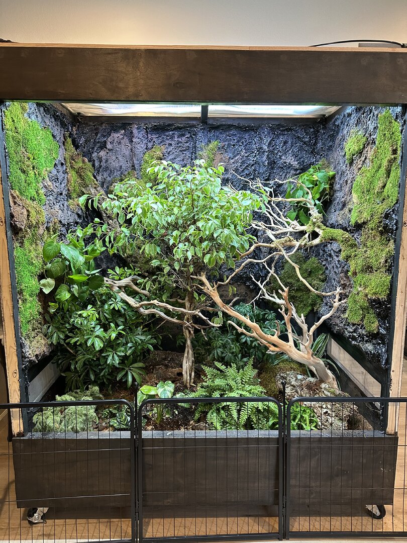 Looking great... Note... Depending on your UVB type you want to make sure you have branches positioned at the right distance. Based on what I am seeing here you may need to increase UVB bulb to a 12% T5HO. Make sure the fixture extends the width of the enclosure. But Also with the 12% you will get farther penetration into the cage through aluminum screen. You’re going to have a distance from bottom of fixture on screen to the branch of roughly 12 inches to get a 3 UVI. Where a 5.0 or 6% bulb you would only get a 8-9 inch distance to branch.