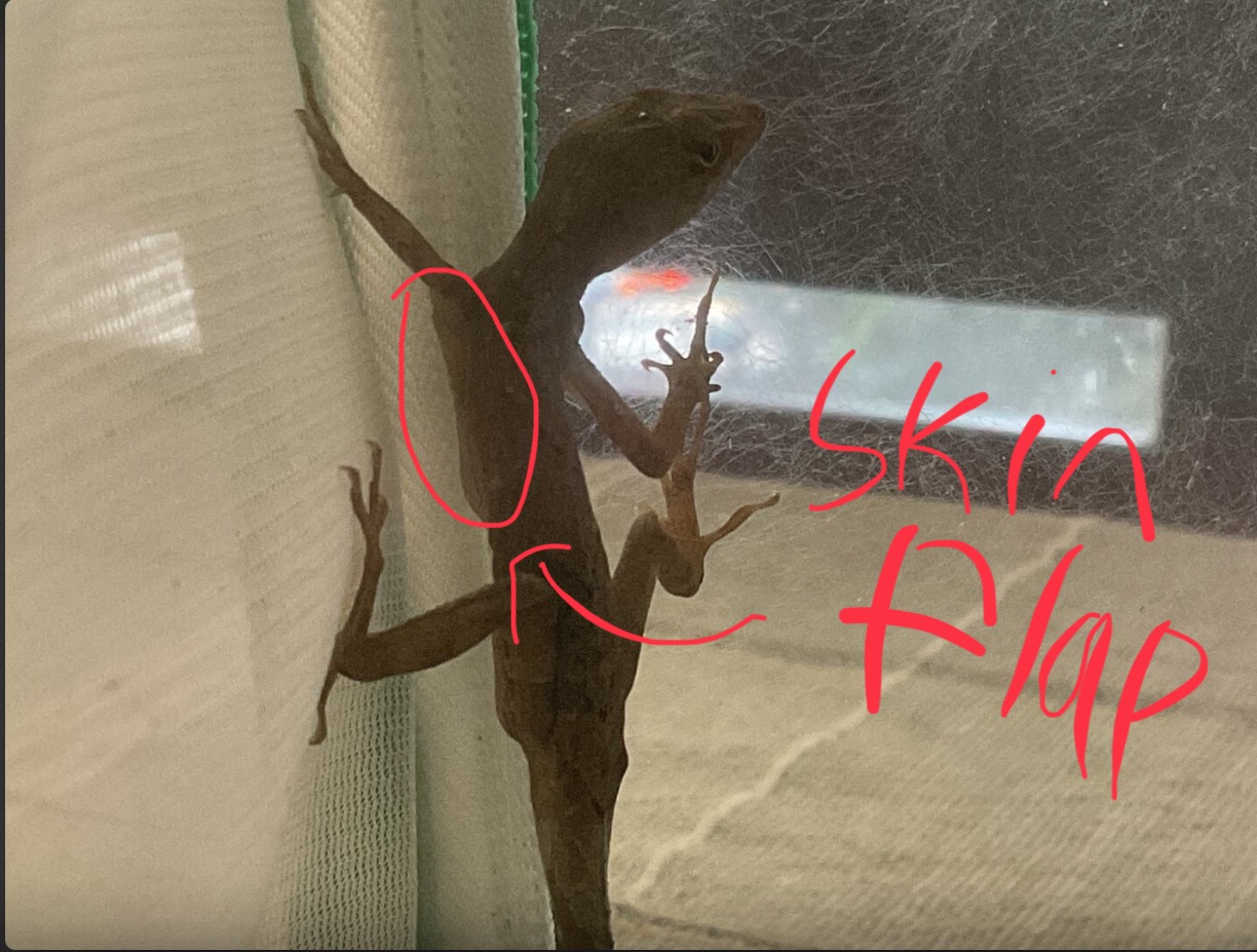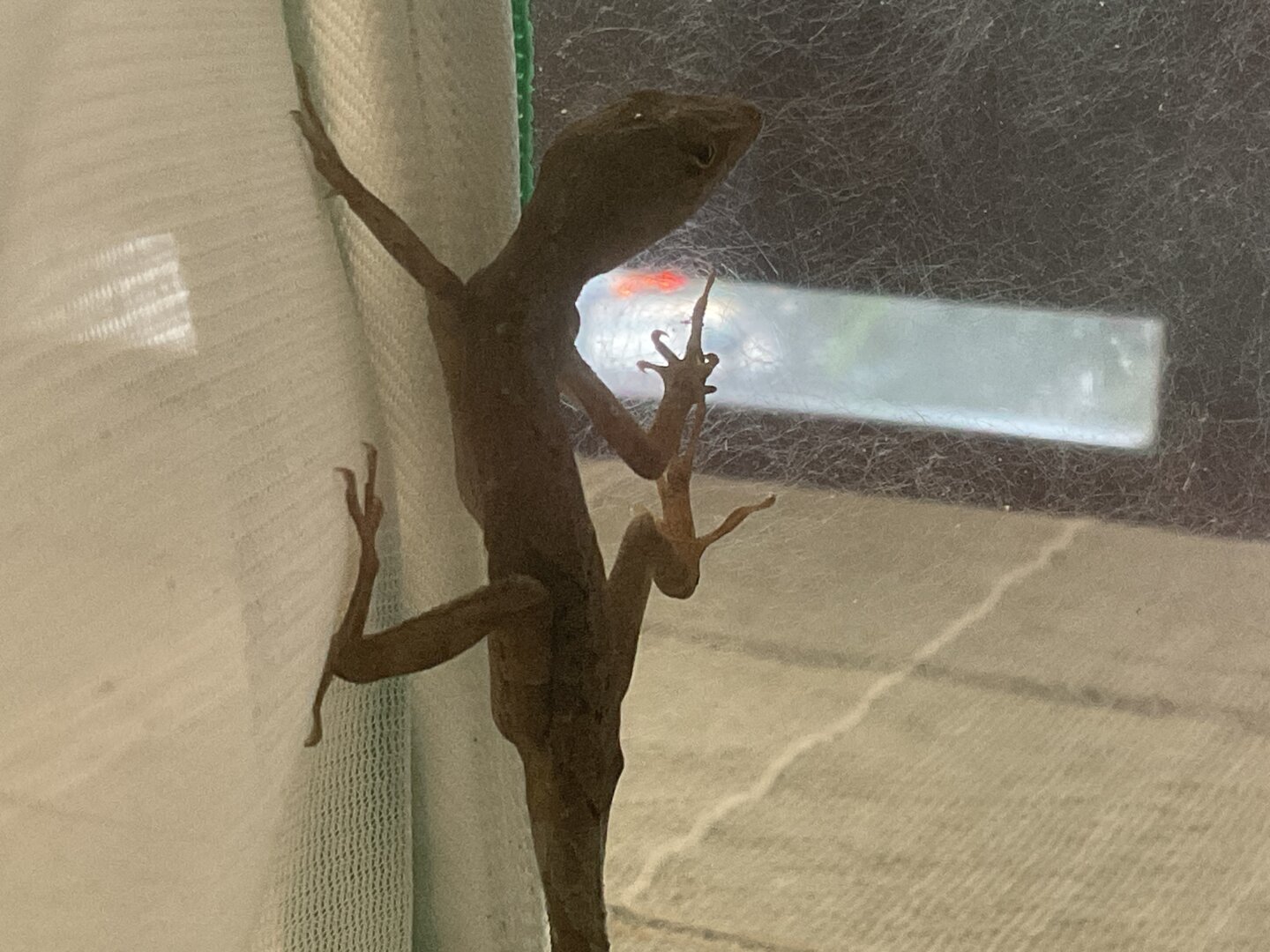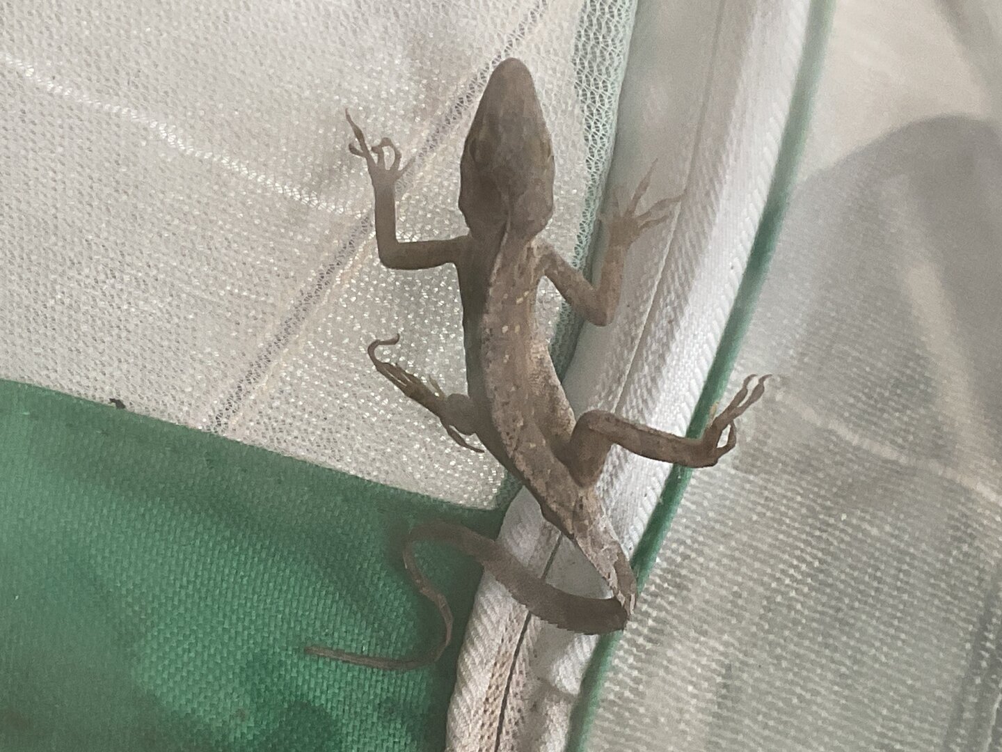 So, I was walking around my neighborhood when I found a brown anole male on the sidewalk. He was just laying on the sidewalk. I picked him up and thankfully he was alive, but he was so skinny and cold. I took him inside and put him in a little butterfly cage since I don’t have any other cages currently.