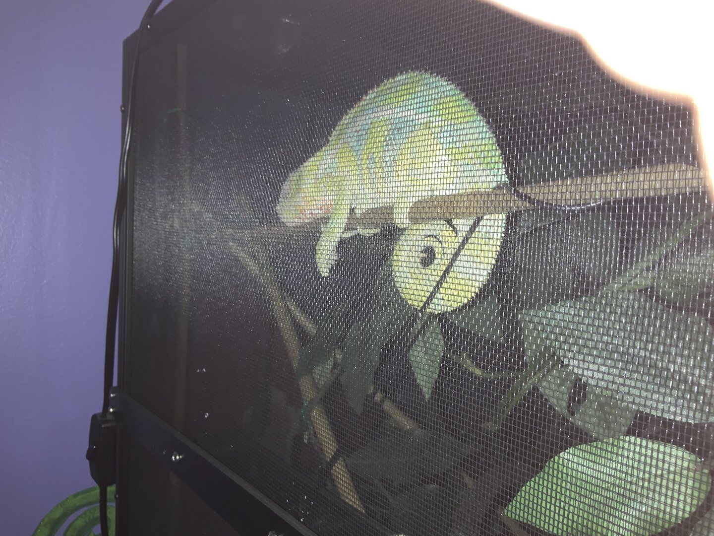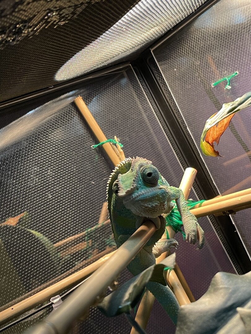 Lighting - We have a T5 screw in that is paired with a heat bulb that hit the chameleon at about 2-3 inches and a T8 tube. Both of the bulbs are relatively new.