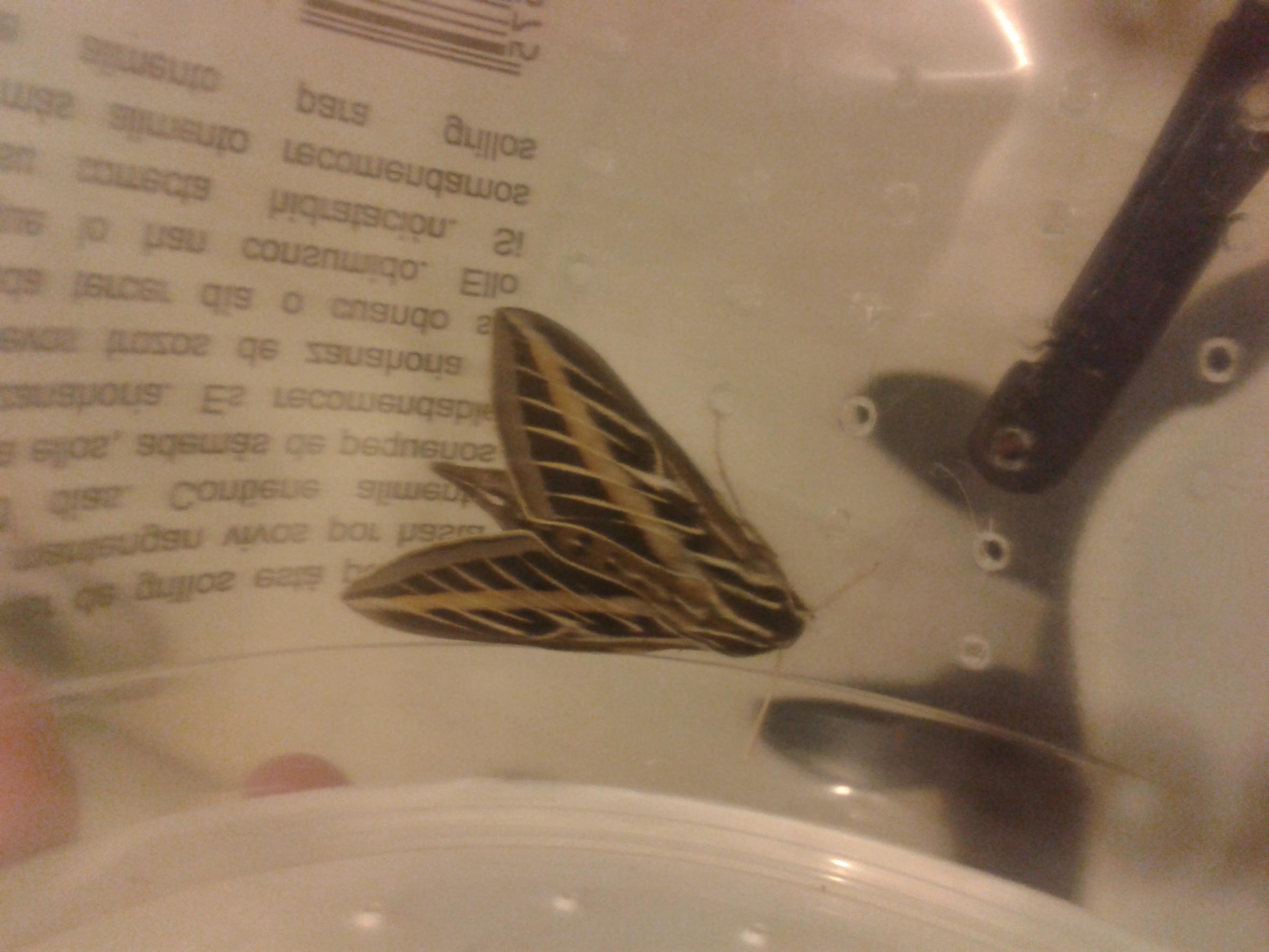 GabeCastro Established Member Feb 17, 2013 #2 Looks like you caught a White Lined Sphinx / Striped Morning Sphinx. Not sure if they're safe to eat so do some research on them. Maybe another member with more experience with those can chime in later.