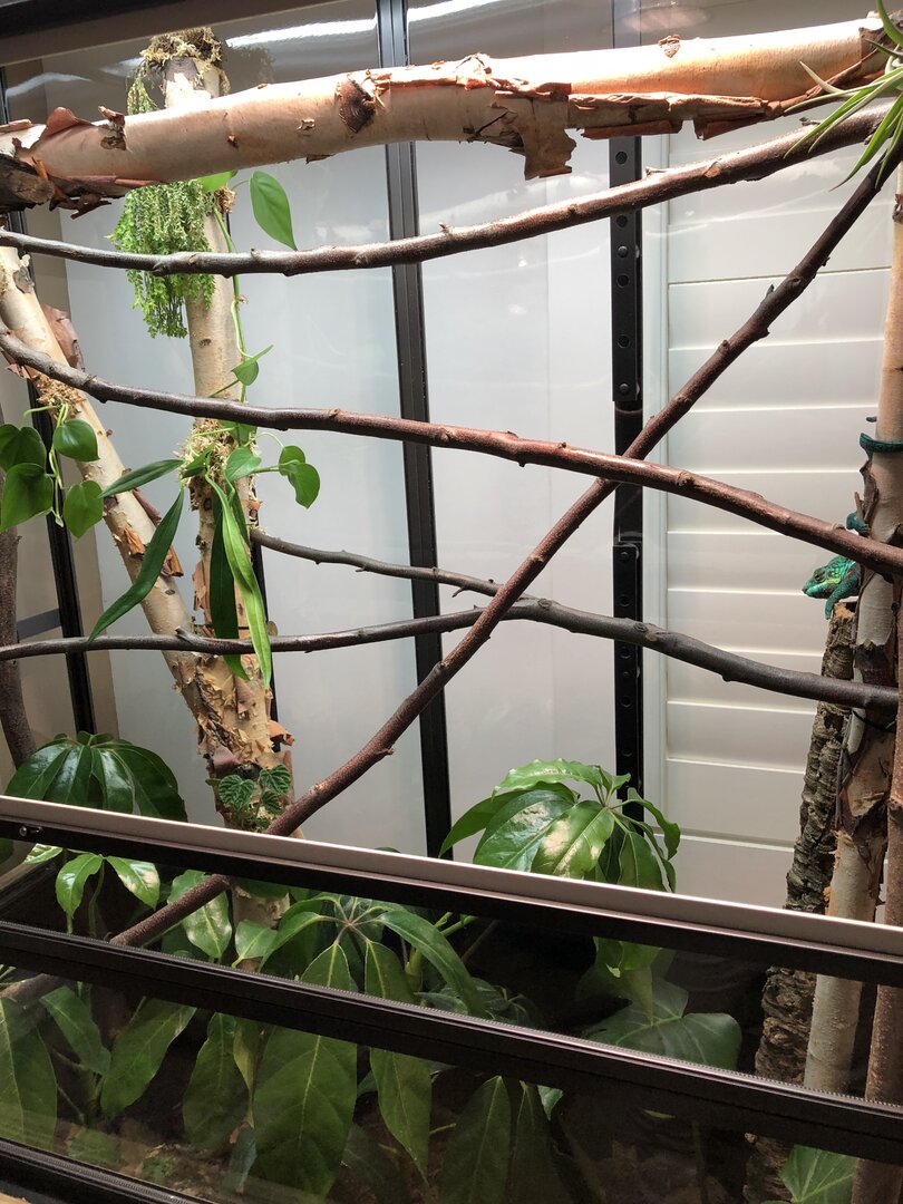 I've been waiting for your postSchefflera Amate looks nice and lush in the enclosures, I prefer them over Schefflera Arbicola (sp?). You can see them just starting to grow in at the bottom of the cage. In a month they’ll be half way to the top! Its also a cheap plant... you can order one online from homedepot dor $25... but its actually TWO plants you can keep together or split up. I split mine up and spread them out. They’ll grow to the top of the cage but its also airy enough to not be toooo thick of foliage.