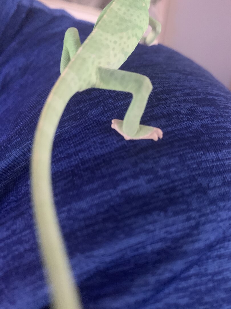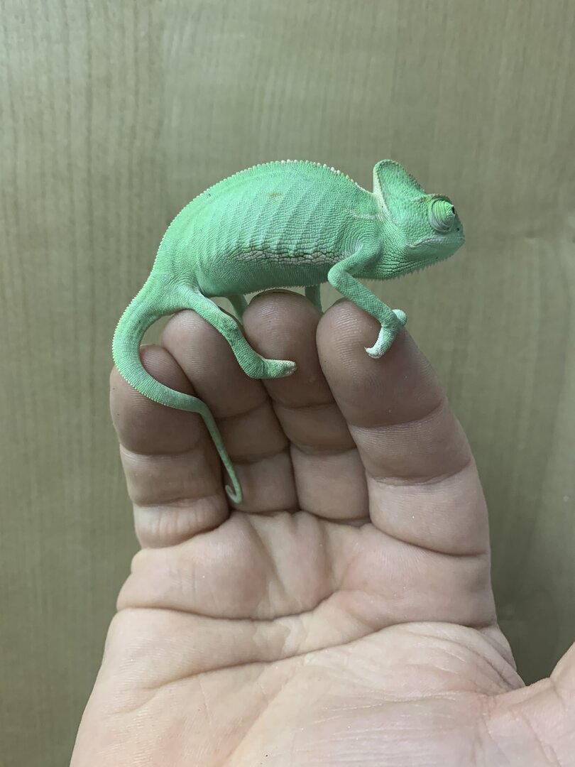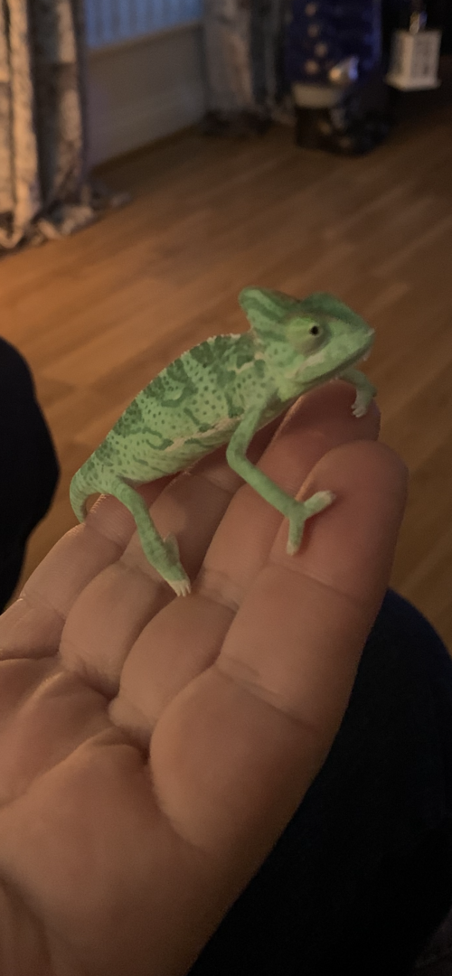 Hello, I have just bought my first Chemeleon which when In the tank is a light green. Anytime I have handled it it really shows a pattern down it’s side.