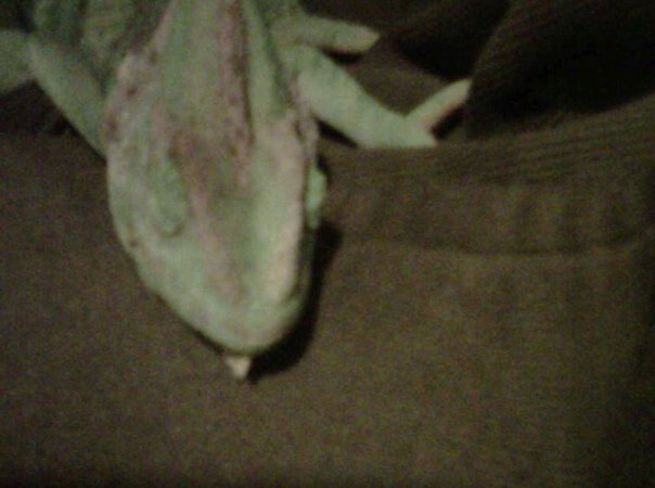 he is about 6 months old and been healthy until this evening, fed him a wax worm ate it no problem, a few hours later i checked on him again and he was laying in the water fountian really dark colouring, eyes shut, not really breathing with only his mouth open and him slighty sticking out his tounge. we took him out of the cage and he wasnt moving at all so we misted him with water and held the heat lamp over him, he is now back to a good colour, mouth shut breathing rather well and his eyes are open and allert, he is also moving his back legs but wont do anything with either of his front legs. if he fell it was about 6 inches and was only on his left side so i dont understand why he wont move either front leg.