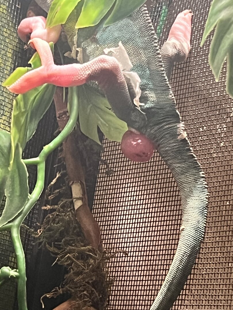 Can Anyone tell me what is going on with my male chameleon there is a pink blob hanging out his bum. At first I thought he was just pooping but then I noticed it was still attached to him and got bigger and more pink once the wet poop smeared away in worried he’s in pain and not sure what I should do any advice would be much appreciated.