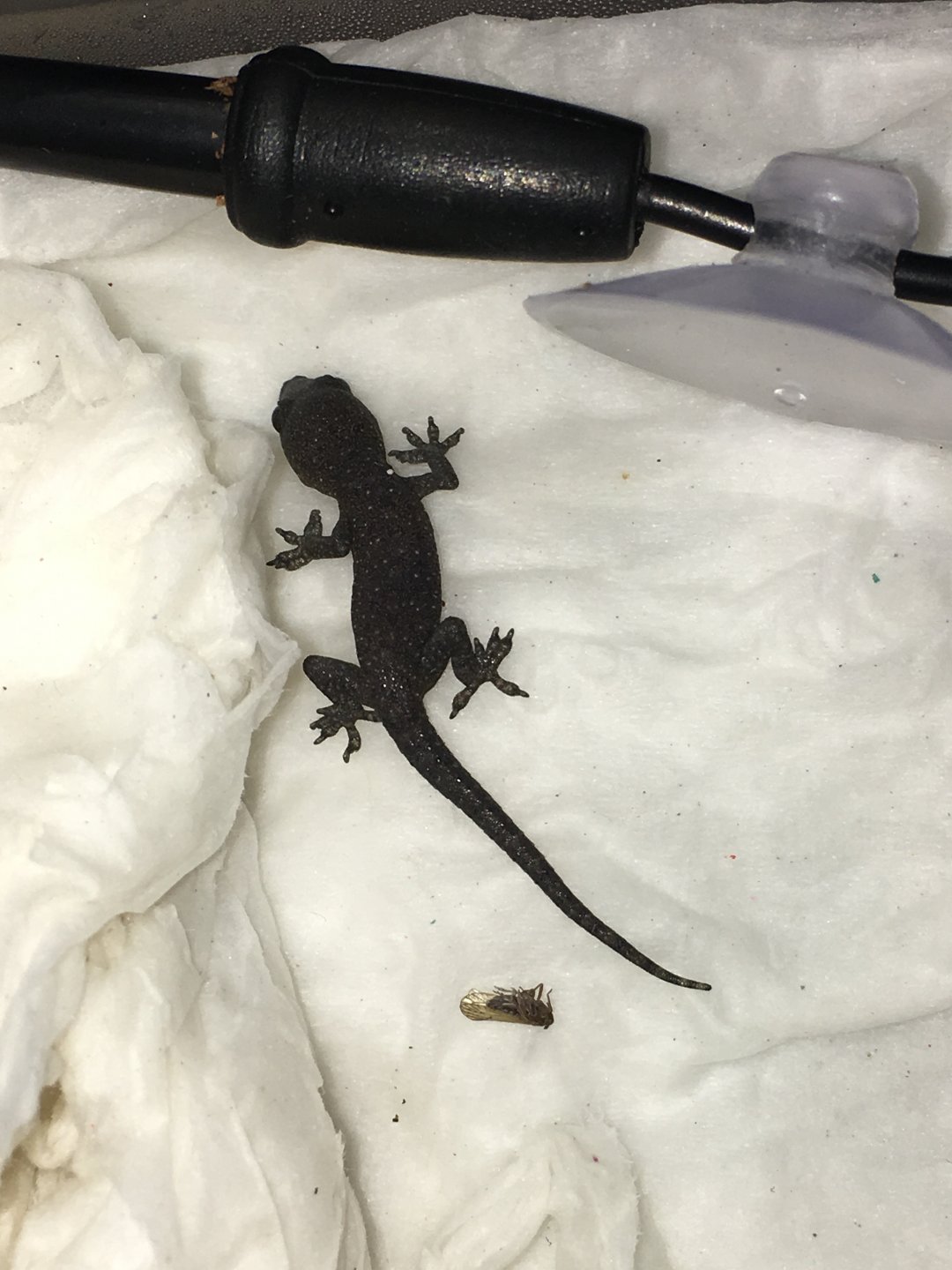 @Replife is a gecko expert maybe he will chim in . I also believe @Andee is quite an expert with them . I believe both suggest UVB as babies . There insectivores so only Bugs , geckos are nocturnal . Your baby will be pretty sleepy during the day . Repashy has a gecko bug gut load that's good .
