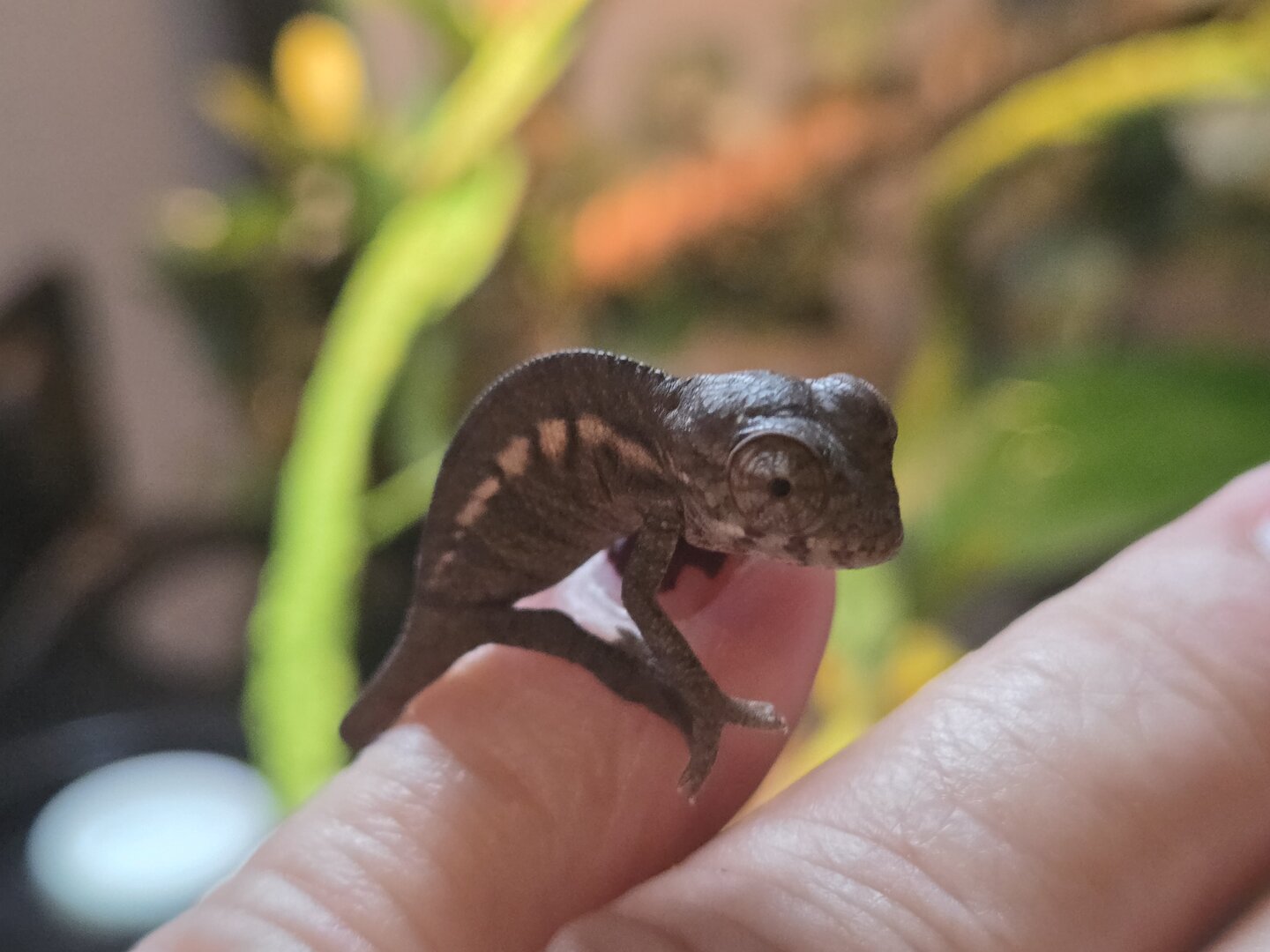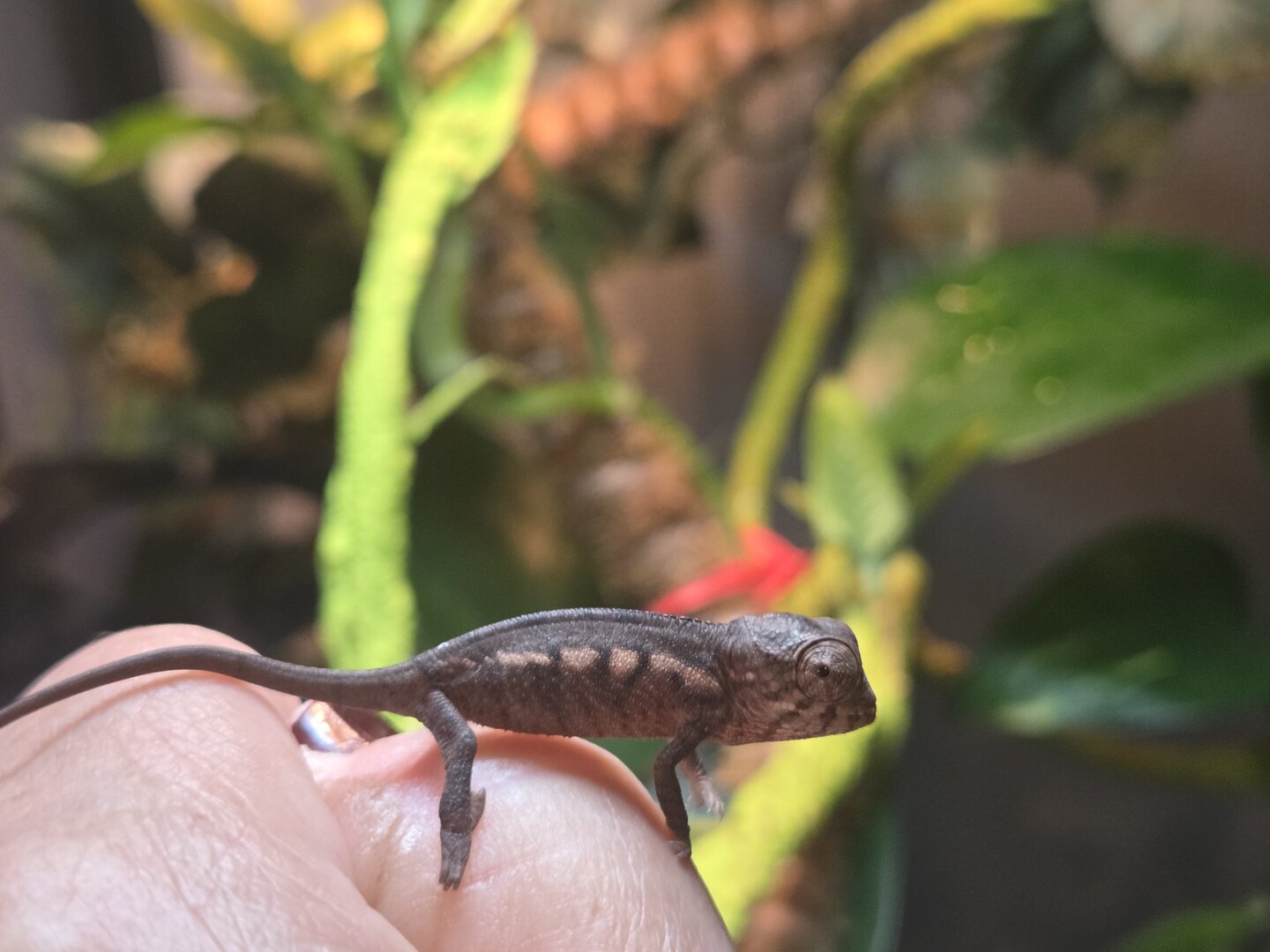Hello, I have a 16 day old panther chameleon baby that I hatched. I am trying to figure out if it's a male or female but can't decide. If you expert out there could give me a hand I would truly appreciate it. Also, does he/she look healthy? I want to make sure I am doing all the right things for it.