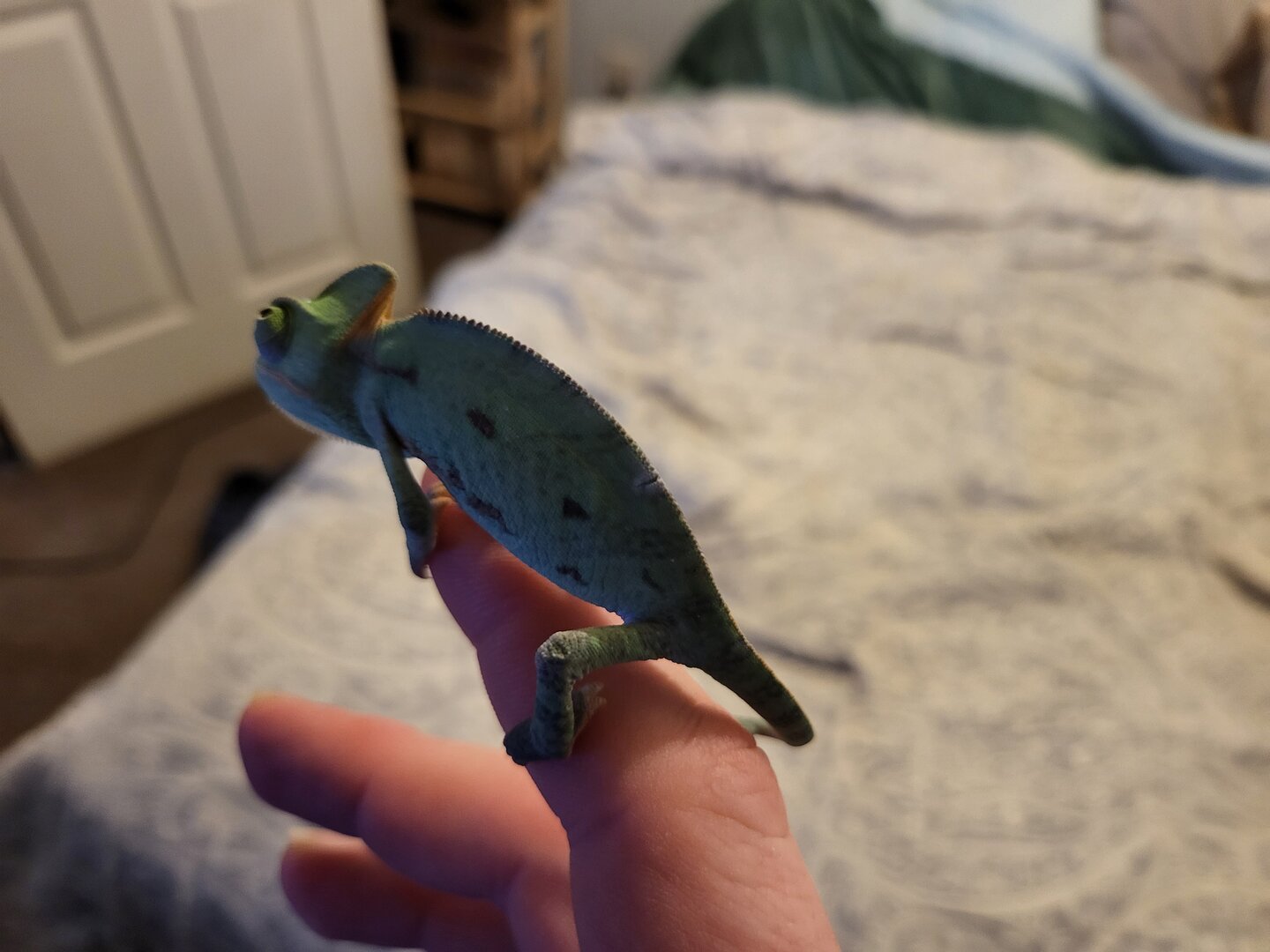 I have a young veiled chameleon. Well I went to clean enclosure. And I noticed a white spot on his spine. Upon further investigation I found a what appears to be a Crack in its skin across the spine. I did not notice this 3 hours ago. Any help would be appreciated