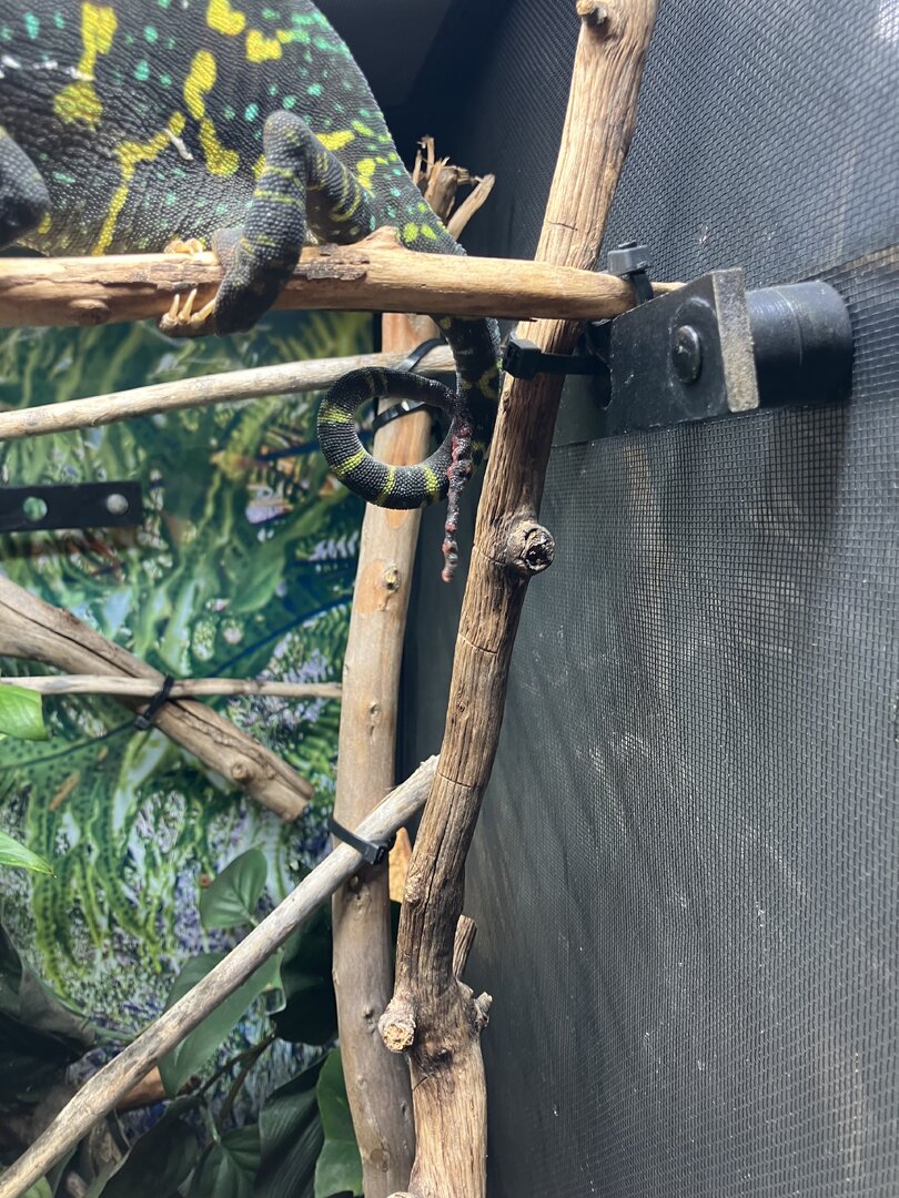 Why would a creature intentionally chew on one of their own extremities? Many animals will self amputate a constantly painful or non-functional toe, even a limb. If old dry shed is stuck to the sensitive pad on the end of her tail, the constriction may be itchy or painful. She's trying to get rid of the distracting irritation. She doesn't have opposable thumbs. Biting at it is her only option.