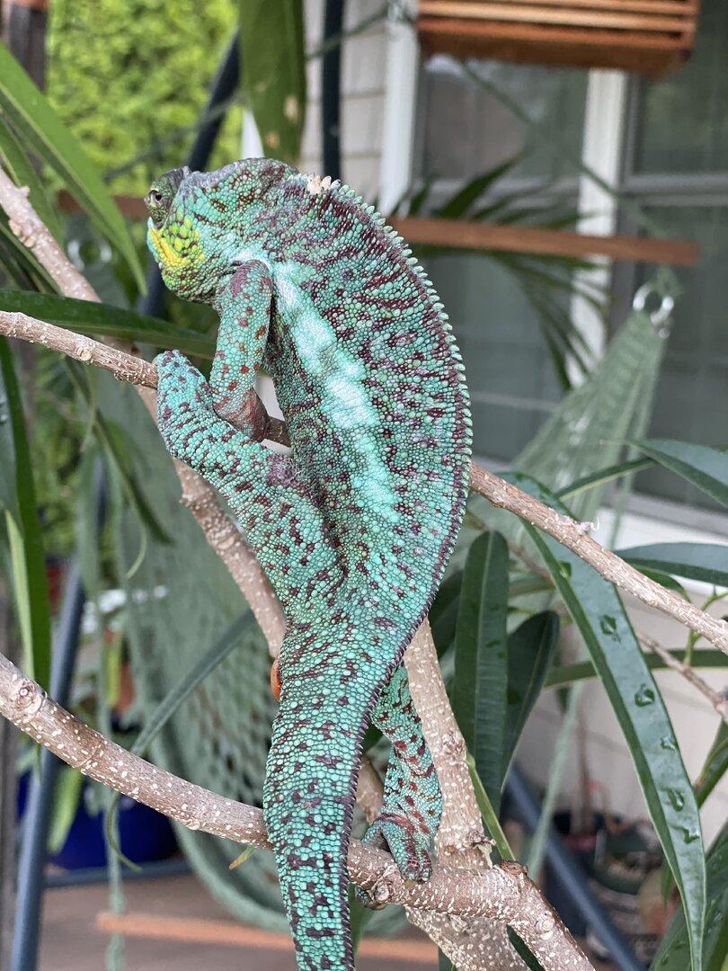 Donnie is doing great, but he picked up a little gular edema, which I think is from being outside nearly all summer. I dropped D3 all together, and dropped MV to 1x per month. So either still too much MV, or I need to greatly scale back the calcium (not that I dust that heavily). Gotta keep an eye on that as we move inside for winter. Have lucked out with weather here in MD - this weekend has been 75 degrees, and the gang is loving still being outside (despite their sad, mostly leafless trees). Next weekend lows in the 30s. That's MD weather for you!