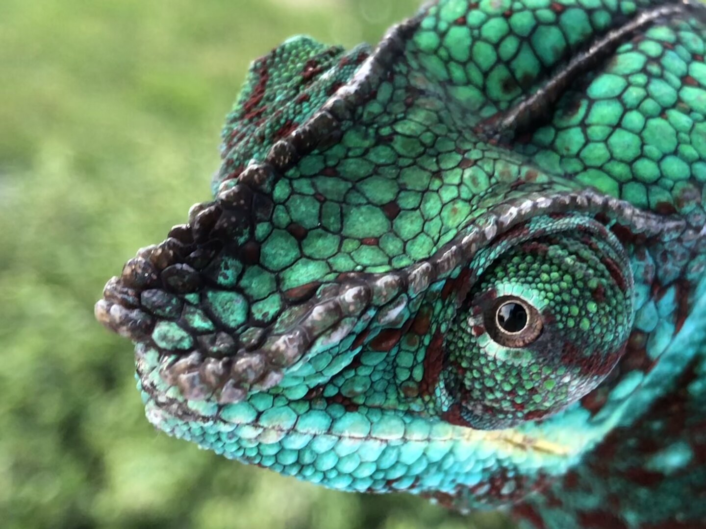 When he came to me he was mostly teal with a few freckles of red.